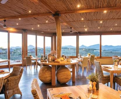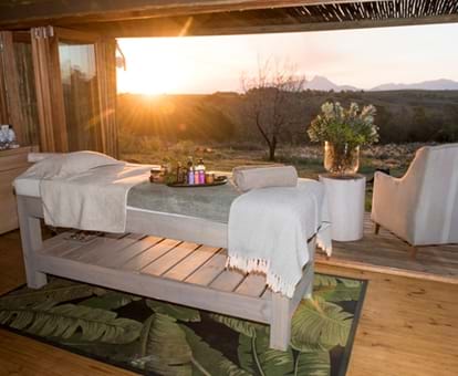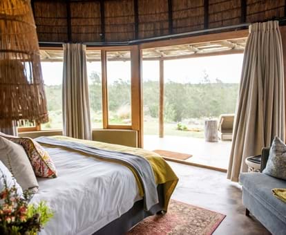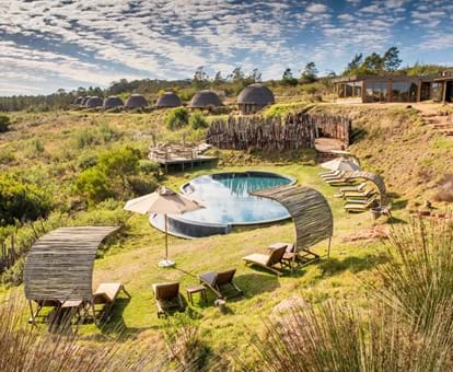 Je kunt in een hut verblijven die is geïnspireerd door de lokale Khoi San-cultuur, hoewel 'hut' een veel te bescheiden woord is. Elke bijenkorfvormige woning, gelegen op de berghelling, beschikt over een comfortabel hemelbed, een eigen badkamer en een houten terras met ligstoelen, heeft een uitzicht van 180 graden met uitzicht op het zwembad en de waterpoelen beneden, of op de omliggende Langeberg-bergen. Er is zelfs een dakraam zodat je in bed kan liggen en naar de schitterende sterren kant staren.