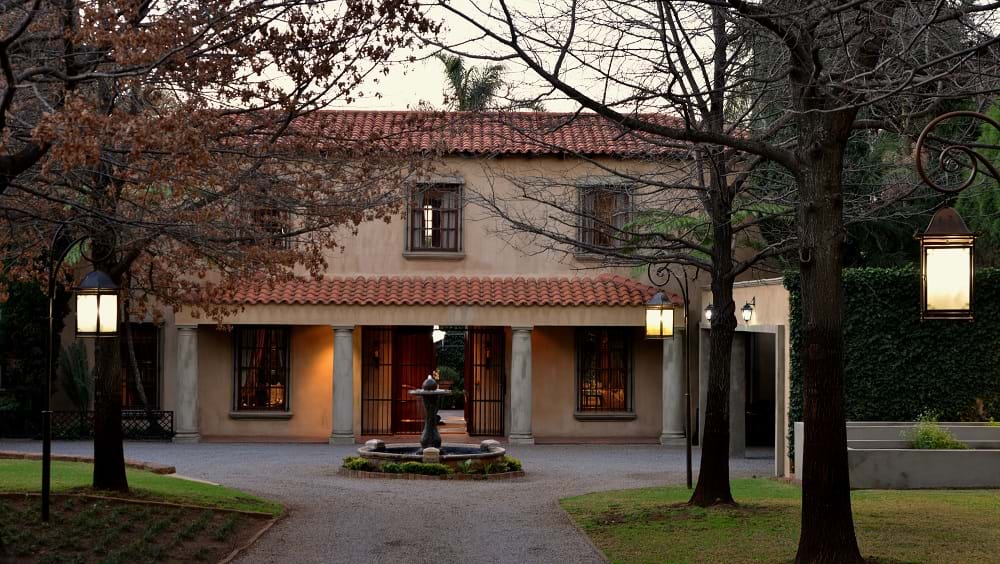 CCombining the charm of a French Provençal villa with contemporary comfort, AM Milner Guest House is a chic boutique hotel located along a peaceful, jacaranda tree-lined avenue in the upmarket Pretoria suburb of Waterkloof. Characterised by the beautiful jacaranda trees that burst into violet bloom in late spring, and exclusive private homes favoured by ambassadors, diplomats and other eminent residents, Waterkloof’s graceful surrounds, yet close proximity to the Pretoria city centre, make it a sought-after destination with both executive and leisure travellers. Originally a private residence built in the style of a French country home, AM Milner Guest House was remodelled to create a sophisticated haven for discerning guests, retaining many of the original features, while incorporating modern interiors and amenities. Comprising a main house and separate cottage, AM Milner Guest House features seven bedrooms, an elegant lounge warmed in the winter by a fireplace, and an exquisite dining room where the executive chef serves up culinary delights to house guests, gastronomic aficionados, as well as for intimate corporate and social functions. A number of tranquil outdoor seating and reclining areas are tastefully arranged around the large swimming pool behind the main house. The pièce de résistance is the enchanting garden, an unexpected discovery beyond the entrance gates.