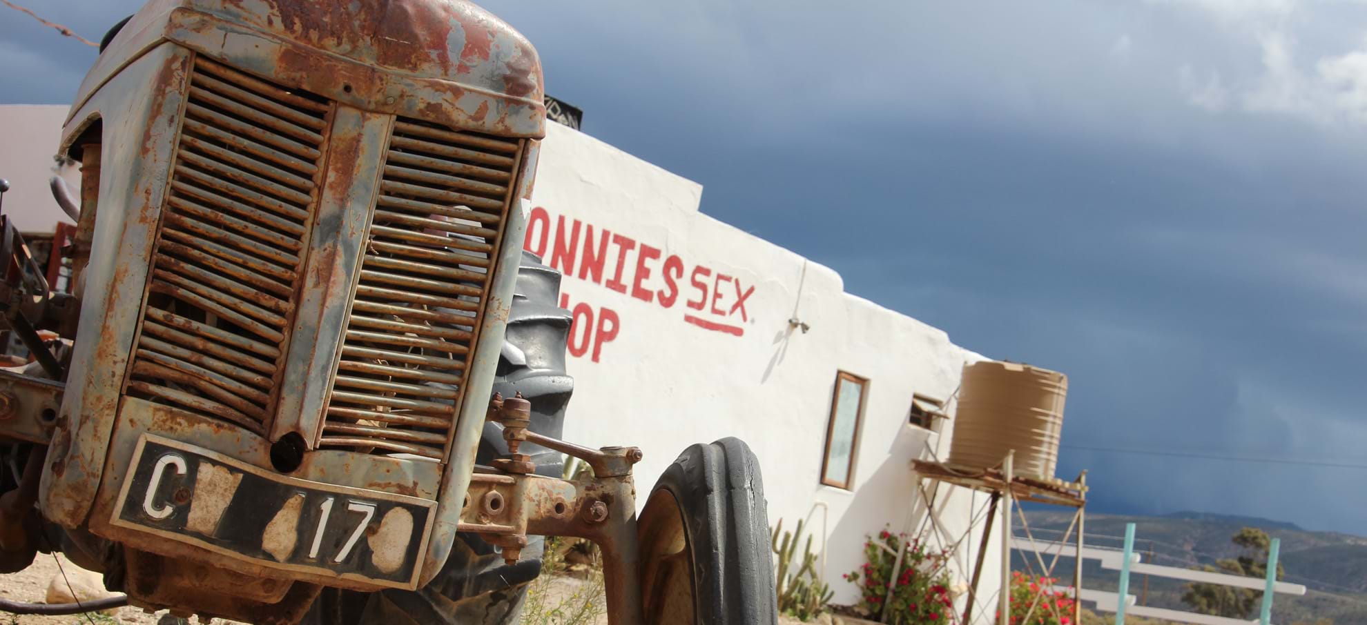 NNur am Hotelpool liegen ist uns im Urlaub echt zu wenig, deshalb lieben wir Roadtrips. Es gibt wohl kaum einen spannenderen Weg, Land und Leute zu erkunden, sich abseits der Touristenpfade zu bewegen und so die ein oder andere Besonderheit zu entdecken. Was den Amerikanern die Route 66 ist, ist in Südafrika die Route 62 - und diese wollten wir uns auf gar keinen Fall entgehen lassen. Sie ist landschaftlich eingebettet in majestätische Berge, malerische Pässe, hoch aufragende Felsen, kristallklare Bäche und eine Fülle von Weinbergen und Obstgärten. Am Rande der Strecke bietet sich eine Vielzahl von Sehenswürdigkeiten. Eine davon ist "Ronnys Sex Shop". Wir sind eigentlich schon daran vorbei gesteuert, als mir die Geschichte dazu wieder brandheiß einfällt.