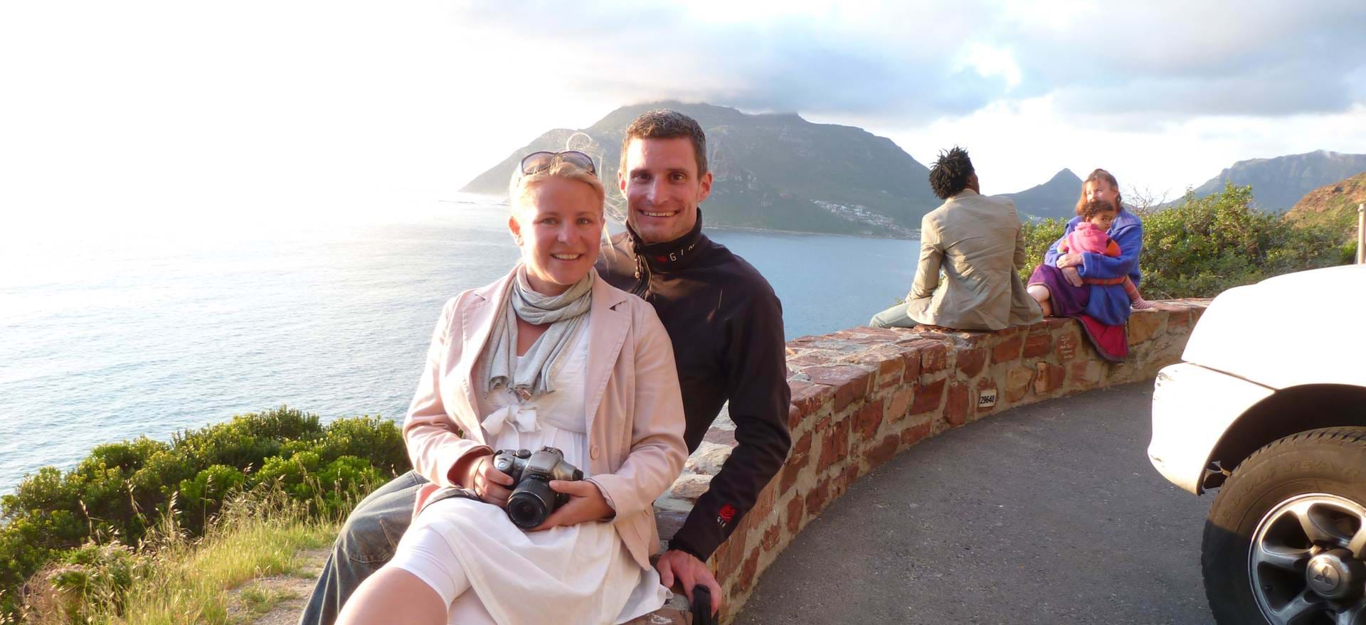 Die Straße ist in den Felsen geschlagen und schlängelt sich weit über dem Meer hinauf. Es bietet sich uns ein Blick auf imposante Felsformationen und den tosenden Ozean. Unsere Geschwindigkeit hat sich inzwischen auf Schritttempo reduziert. „Mach langsam, ich brauche noch ein Bild!“ Nicht nur Werbefotografen wollen diese Schönheit festhalten. Die Aussicht hinüber zum Hafen von Hout Bay, zu Seal Island und den Bergen ist atemberaubend.