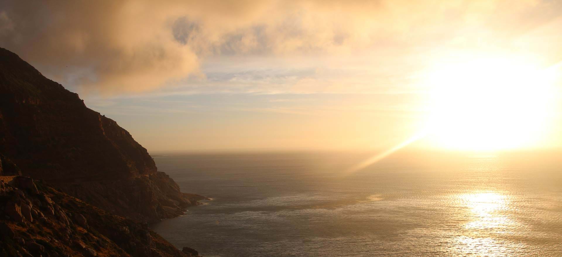 IInzwischen küsst die Sonne die Horizontlinie, beginnt im Meer zu versinken und taucht die Felsen in glühend rotes Licht. Am Himmel formen sich Schleierwolken und wir meinen darin einen Engel ausgemacht zu haben. Und während die Sonne untergeht, stoßen wir an: Auf das Leben und die Schönheit Südafrikas!