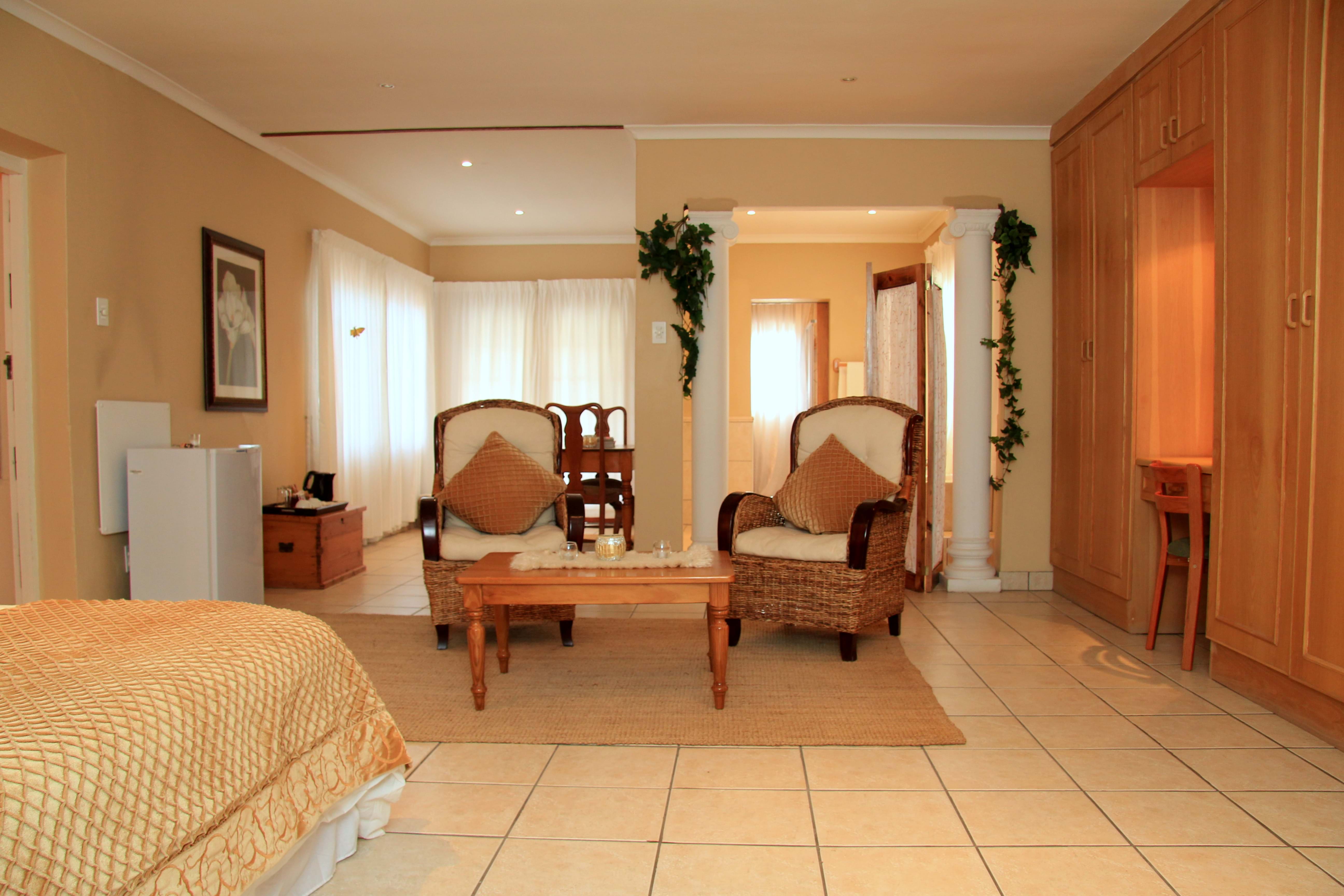 110 Different, stylish en-suite bedrooms to choose from. All rooms equipped with100% pure Cotton bedding, Flat Screen Televisions all rooms/units including 25 x DSTV channels, Radio, Hairdryer, aircons, fan, electric blanket, free wireless and other little comforts. Serviced daily. In-house Laundry. Safe Secure on premishes Parking.Electric Fencing with access control and gate and front door of main house. Pool and Entertainment area for young and old with braai fasilities.