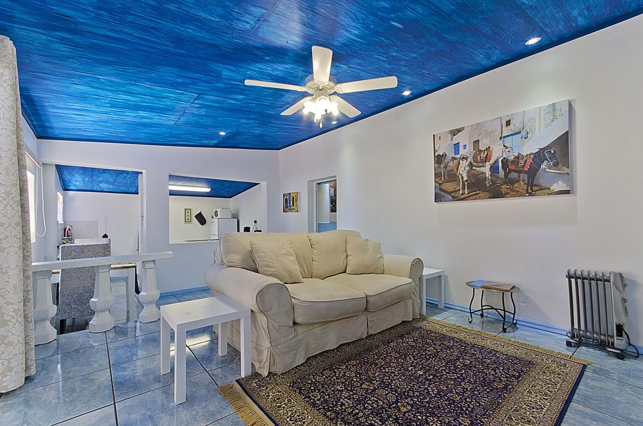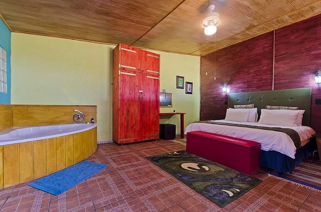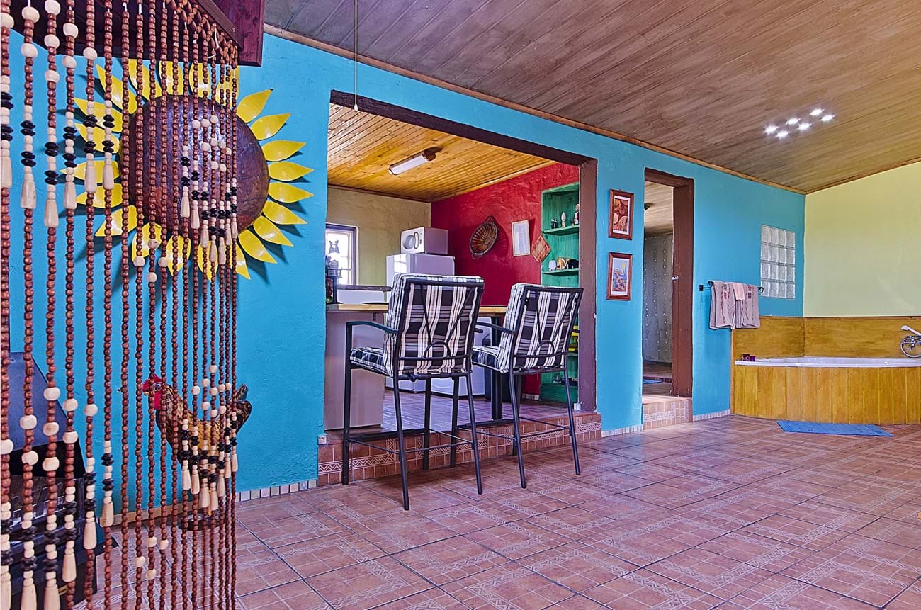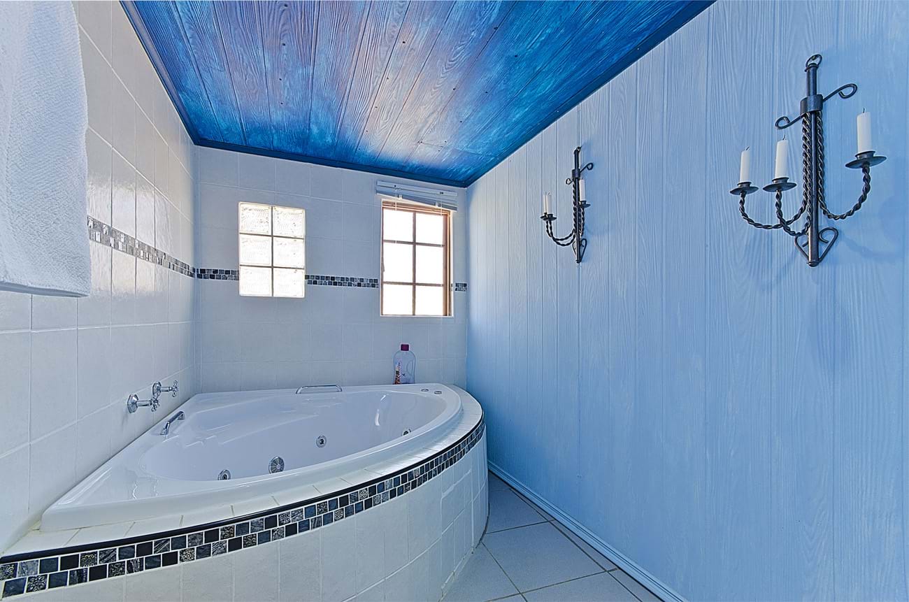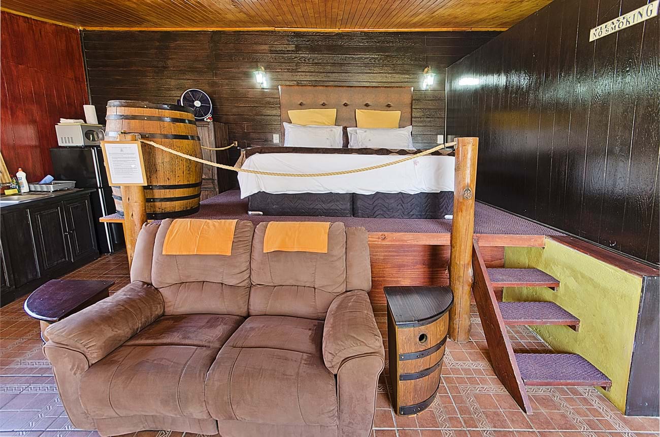 BBlue Roan Country Lodge is a 4 Star grading self-catering venue which is ideally situated for international visitors coming to the Cradle of Humankind who want to explore the area and visit the famous Maropeng Visitors’ centre and Sterkfontein Caves as we are only an hour’s drive from Pretoria and Johannesburg. It is also very conveniently situated for domestic visitors who want a breakaway from the city without having to undertake a long drive. Blue Roan offers 7 brick self-catering units which are individually fenced with private gardens and which offer very comfortable and romantic accommodation for couples and their pets. The units have Jacuzzi baths, large walk in showers, private patios with built-in braais, decorative lighting, king size beds, fully equipped kitchens, log fireplaces and so much more. Homely touches like playing cards, dvds, books and candles are welcome additions. The cosy and well-equipped units have big glass sliding doors which open up to a panoramic view of the the Magaliesberg mountain range and rolling hills. We are on a tar road just 5 minutes from the quaint village of Magaliesburg which offers a range of spar treatment centres, hotels, restaurants and supermarkets. The units themselves are totally unique as they have been decorated with themes such as Mexican, Tuscan, Greek and the Barn. Guests come back time and again to experience the different styles or else to revisit their favourite themed cottage which opens onto a lovely grassy park full of pine trees and hammocks strung between them. Beautiful horses roam freely around the fields surrounding the cottages and there is a peaceful and tranquil country feel and a homely atmosphere.