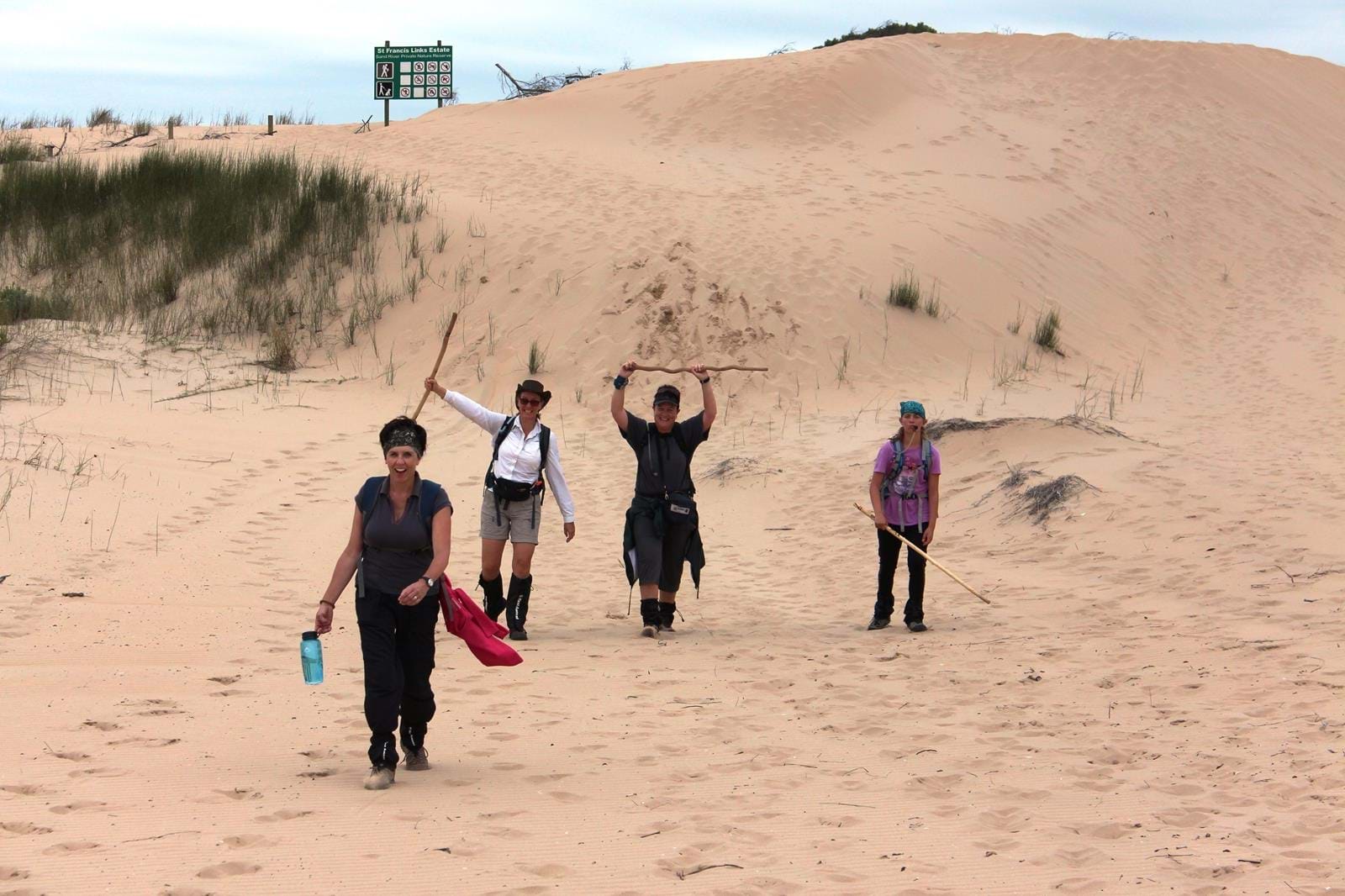 The Oyster Bay Dune Bypass System, called the Sand River by locals, is a 16km sand of sea, to be conquered by hikers on day 2. The trail leads from Oyster Bay to Dune Ridge Nature Reserve on the outskirts of St Francis Bay, and could be the most challenging of the 4 days. The moving dune field sometimes opens century old middens, protecting pot shards, bones, teeth and huge shells for future generations to see. The wetlands become a hive of bird activity during the wet months, changing the scenery completely.