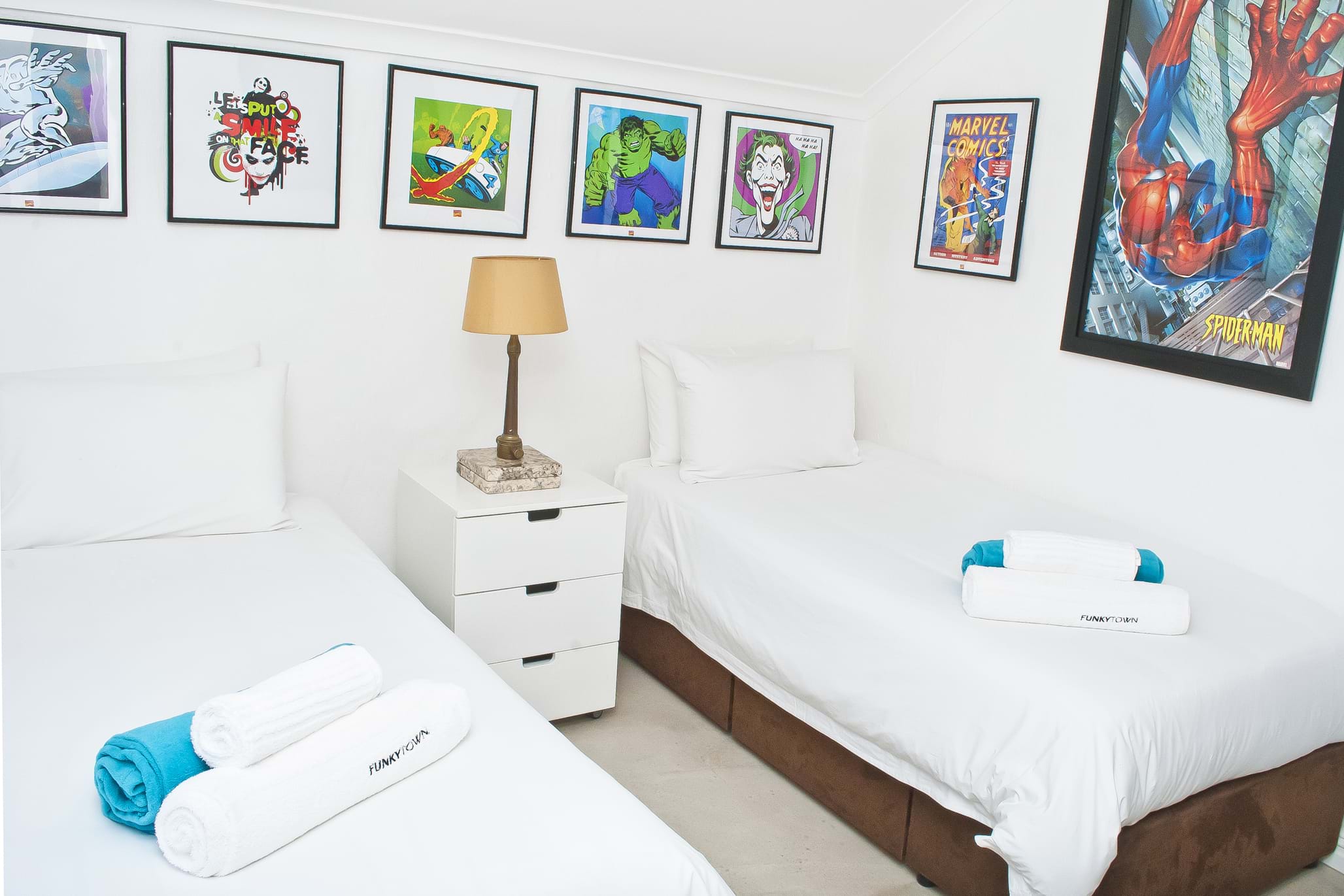 FFunkyTown Jeffreys Bay is an eclectic expression of design, colour and art. Our public areas are colourfully creative with a contemporary bar, TV’s and Wi-Fi. Our well-appointed kitchens are sleek and modern. We have an abundance of local art throughout the property and very hip.
