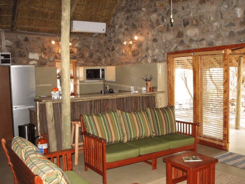 AA beautiful thatch and stone guest house in a natural setting in the heart of the Northern Cape. The house has three en-suite double rooms. With the comfort and luxury of an all-season air-conditioner, filtered water and DStv, it does not take away from the fact that you are in nature. The kitchen is fully equipped with full size fridge/freezer, stove with oven and microwave and all the pots, pans, cutlery and crockery that you will need. There is plenty of outdoor space and guests can enjoy lazy evenings under the clear and awesome Northern Cape night sky in the spacious lapa.