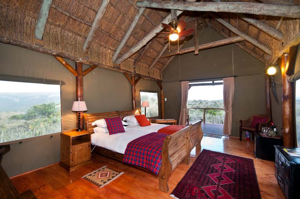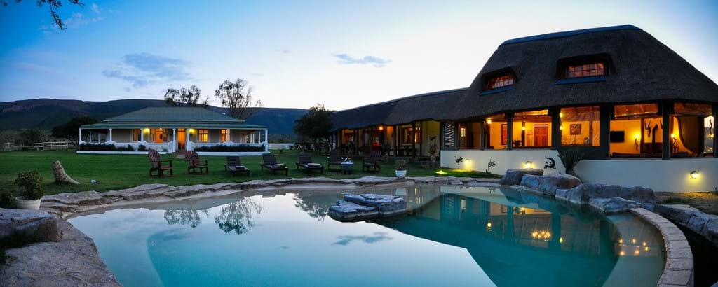 TThe Karoo Heartland in the Eastern Cape is renowned for its rugged panoramic mountain ranges, wide open plains, unpretentious hospitality, quaint towns, and much desired peace and tranquillity. Against this magical backdrop, only 130km from Port Elizabeth, you will find Koffylaagte Game Lodge. Our game farm and lodge offer both full board accommodation in our stunning safari style thatched tents and lodge as well as self-catered or family accommodation in our traditional 1800s farmhouse. Retaining much of the character, simplicity, history and culture of the days when the early settler traders used this spot as a resting place on their travels between the coast and the interior, Koffylaagte transports you from the modern world to a simpler, more peaceful time. Sit back and relax whilst taking in the uninterrupted vistas of the Karoo. Book a game drive, guided walk, or even a horseback trail through our game reserve then allow the cares of the world to pass you by as you take a dip in our pool or unwind in our sauna. If you’re feeling adventurous, bring your own mountain bike and attempt our mountain pass! The 13 bedroomed accommodation capacity is spread between 5 luxuriously appointed en-suite safari tents, main lodge consisting of 3 upmarket lodge rooms, 1 x two-bedroomed and 1 x 1 bedroom self-catering farmhouse units plus a further 1 x 2 bedroomed Bush Cottage, making our maximum sharing capacity 30 people. Safari Tents: Overlooking the breathtaking Nyala Valley, you will find the Nyala Valley Safari Tents. These five elegantly furnished units, with their private wooden decks, offer unsurpassed game viewing, tranquility and privacy,yet are situated a mere 150m from the main lodge dwellings. These units are perfect for couples wishing to experience the serenity and beauty of the African bush, whilst experiencing absolute comfort and luxury. Main Lodge: The Main Lodge consists of three luxury, en-suite bedrooms that overlook the gardens and rock-pool and the original farmhouse homestead dating back to the1800`s, with kitchens equipped with a refrigerator, microwave oven and stove and also provide cooking utensils, cutlery and crockery. These units are perfect for families or couples wishing to have a some privacy. Bush Camp: Our eco friendly bush cottage can sleep up to 8 people. Be one with nature in our cute, rustic 2 bed 2 bathroom cottage in the bush. Perfect for family getaways, school/youth camps,and bachelor bashes. For a true rustic, bush experience. A log cabin, set in its own quiet valley at the base of our mountain, the bush cottage sleeps up to 8 people in 2 rooms, with 2 shower rooms (powered by gas-fired geysers), a large kitchen/living area with stonefire/braai-place, gas fridge and stove, as well as solar-powered lighting. Perfect for romantic getaways, fishing weekends (Darlington Dam is less than 30minutes away), bachelors weekends and family breaks.