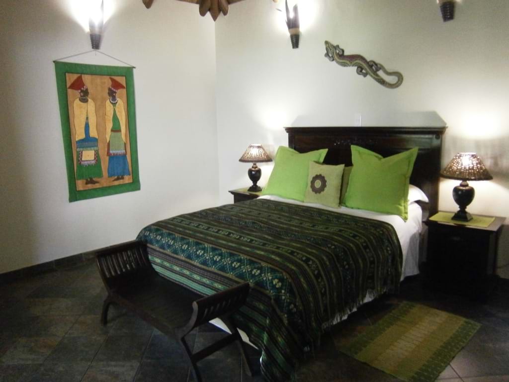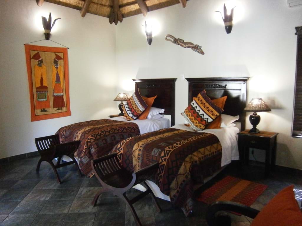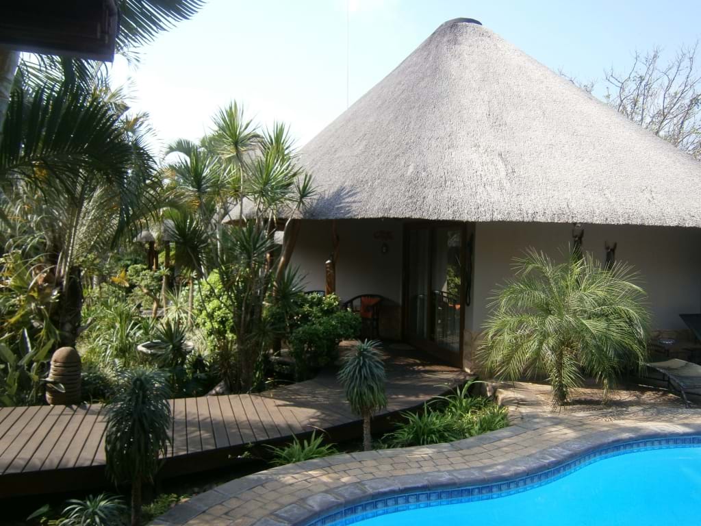 LLodge Afriqué is a 4 star guest house with eight free standing luxury thatched suites, each with full Afro-Victorian bathrooms. Each luxurious air conditioned suite also has a private outdoor African shower leading of the patio which is surrounded by lush tropical gardens. All the suites are connected to the central lodge by a raised wooden walkway. Continental & Full English breakfasts are served on our open air patio. Join us for a sun-downer from our honesty bar or read a book & listen to the numerous bird species whilst relaxing in our reading lapa.