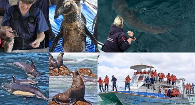 MMarine Dynamics tourism hub offers five star shark cage diving and whale watching/eco tours with onboard marine biologists in the unique Dyer Island ecosystem of Gansbaai,Western Cape, South Africa. We work with the Marine Big 5 - sharks, whales, dolphins, seals and the endangered African penguin. We provide an exceptional marine experience led by our passionate and dedicated team on custom designed boats. Our Responsible Award winning companies are Fair Trade Tourism certified, our boats carry the Blue Flag lable and we believe that, “Your Choice Makes a Difference.” Through our environmental project, the Dyer Island Conservation Trust, we are making a real difference for conservation and the community. We conduct effective science through daily observational data and research projects on marine species to translate into evidence-based conservation initiatives and legislation. We encourage our guests to become marine ambassadors.