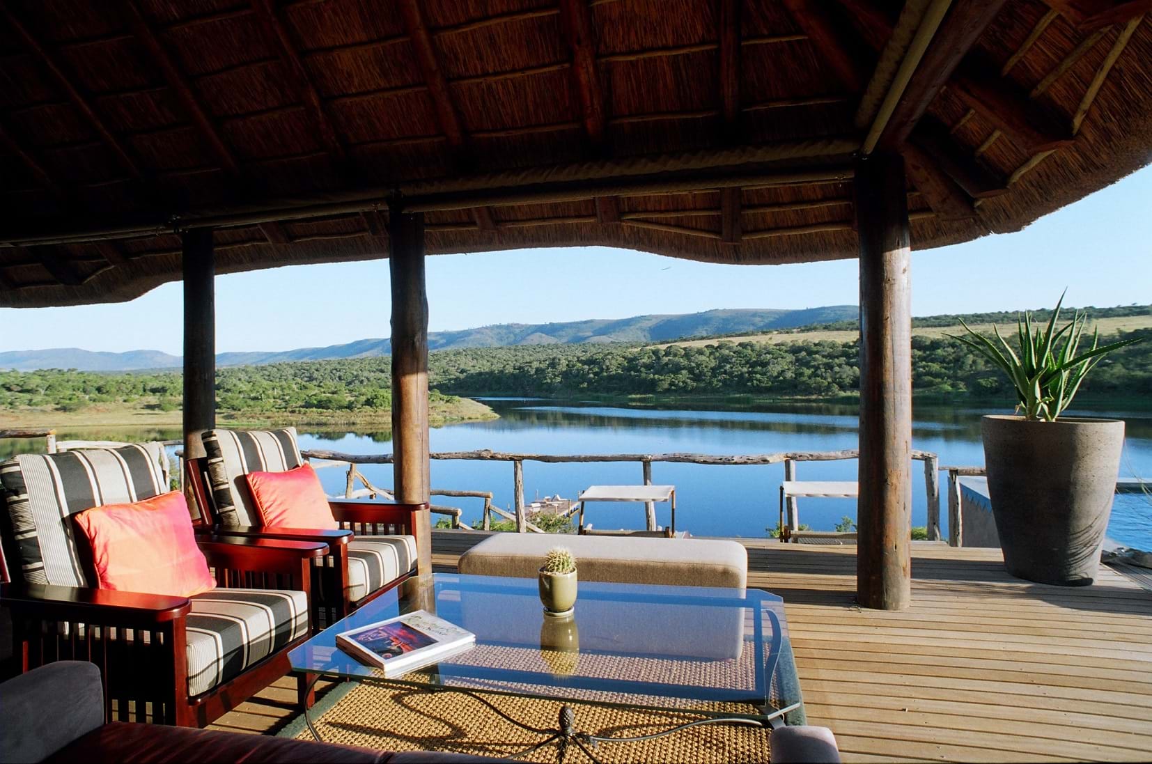 Nestled within the malaria-free province of the Eastern Cape, guests are spoilt with unrivalled views of Lake Cariega, complemented by an inviting hospitality and warm atmosphere. Guests can look forward to spotting the Big 5, as well as the free-roaming pride of magnificent white lions, wild dogs, hyenas and cheetahs.