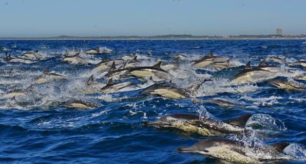 RRaggy Charters has won 6 major Tourism/Environmental Awards during the last two years. It is the only company licensed for both boat-based whale and dolphin watching and white shark cage diving in Algoa Bay. We offer clients a personalised ocean experience where they have the opportunity to see whales, dolphins, seals, sharks, penguins and other seabirds in Algoa Bay. We have recently been awarded the rights to the White Shark Cage Diving in Algoa Bay and now will be the only company in South Africa to be able to offer the Big 7 Tour. This tour will be one of a kind in marine tours in South Africa. It will be a full day tour covering around 140 km and will not only cover shark cage diving but also whale and dolphin watching, sardine run action, seal viewing, observing the largest gannetry on the planet, the history of Bird Island, the Woody Cape section of Addo Elephant National Park, the Alexandria Dunefields which are the largest in the Southern Hemisphere, early Khoi history and settlements, and visit St Croix Island to see the 23 000 endangered African penguins. Nowhere else in the world will such a tour exist! We are dedicated to providing an educational and personal experience with the marine life found in our bay, showing guests as much wildlife as possible during our cruises, whilst educating them on the marine environment and its vital need for conservation. Our Visitor Experience superiority is confirmed by the fact that we have been rated # 1 on Trip Advisor for the last 5 years of the 6 marine tours and of the 33 outdoor tours offered in the Metro. Raggy Charters was established in 1997 in order to fund the Baywatch Marine Conservation Project which was founded in 1992. The project is dedicated to marine conservation and research in Algoa Bay. One of our cruises is to St Croix Island, which is home to the largest breeding colony of African penguins in the world. These endangered birds have rapidly declined, losing 70% of their numbers in 9 years. Raggy Charters has assisted our award winning resident scientist, Dr Lorien Pichegru, on a weekly basis, in researching the reasons for this decline. Due to the results achieved, the whole eastern portion of Algoa Bay is about to be declared a Marine Protected Area. This is the best option available in order to preserve the remaining penguin population. We recently won the BirdlifeSA Owl Award for “outstanding contribution to the conservation of birds and their habitats”. Between June and December we find the ‘gentle giants’, both humpback and Southern right whales. They travel thousands of kilometres to use the safe and warm shores of Africa as their breeding grounds. Humpback whales are well known for their acrobatic breaches and they never fail to amaze here in Algoa Bay, as we see 7000 of them passing by. Southern right whales prefer the shallower waters and seem to really enjoy getting close up and personal with our guests as they lazily roll and dive around the boat. We are lucky to boast the best bottlenose dolphin sightings in the world as 28 500 individuals make use of Algoa Bay. Their numbers are ever increasing, as we constantly see calves amongst the often 600-strong pods. We recently launched Algoa Bay as the Bottlenose Dolphin Capital of the World. The launch was attended by 350 people, including the Minister of Tourism, the CEO of Eastern Cape Parks and the CEO of Nelson Mandela Tourism who jointly hosted the event. We recently set up and trained a whale and dolphin spotting group who make sure that we get our clients to see dolphins on almost 99% of our cruises, surely a world record! Between February and June each year we get to witness the incredible Southern sardine run. Guests sit spellbound watching the feeding frenzies with thousands of common dolphins launching through the waves trying to herd the fish in to a ball, with Cape gannets and other seabirds dive-bombing the shoal. Penguins, seals, sharks and game fish help themselves to the feast and then bryde’s & minke whales wait until the end to finish the school off, as they lunge through the water, mouths open wide, engulfing anything in their path. This year Raggy Charters hosted our 7th BBC film crew who are including this phenomenon in their latest documentary which will be narrated by Sir David Attenborough and entitled “The Perfect Planet”. It will be watched by an estimated 200 million people. This series will have a massive long term effect on the flow of international tourists to Port Elizabeth and the rest of South Africa. Our bay is also home to 270,000 Cape gannets breeding on Bird Island, and 6000 Cape fur seals at Black Rocks. We see humpback dolphins mostly in the summer months. It is during this time that the surface is covered with the tiny fins of baby hammerhead sharks. During the winter months, apart from the migratory whales, we run marine bird cruises to find albatrosses, petrels, terns and other pelagic bird species!