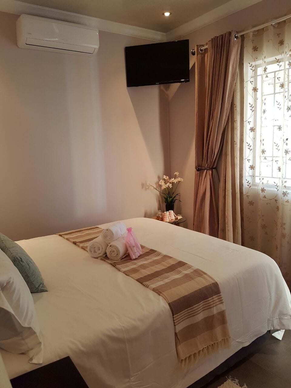 AAn award winning guesthouse with 10 rooms of different variety, decor for a personalized touch of art in each room. All rooms with en-suite shower\tub, fresh towels and amnesties,tea & coffee tray, safe deposit box with digital lock system, air conditioner, plasma DSTV, hair dryer and a bar fridge. for relaxation we have spa and a swimming pool. a conference hall to host 40 people. A fully licensed bar with big screen. an ever green garden big enough to host special events. Safe with 24hr surveillance cameras, undercover parking and security gurard. Free WiFi for all our guests. Our friendly staff will help you settle well.