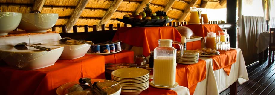 Sabie River Bush Lodge offers our guests an African themed dinner menu and a full English and Continental breakfast in our thatched restaurant overlooking the Sabie River and the Kruger National Park, enjoy sundowners on our vast wooden deck whilst watching the Kruger animals come down to quench their thirst at the river. Come and enjoy your stay with this award winning Lodge and allow us to satisfy your Kruger wanderlust with guest service excellence at affordable prices.