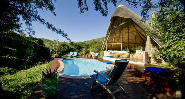 Spacious viewing decks surround the main lodge which overlooks the wooded valley below. A sparkling swimming pool is an inviting alternative to the Kariega River Estuary and is an ideal place to relax and refresh between game drives or other activities.