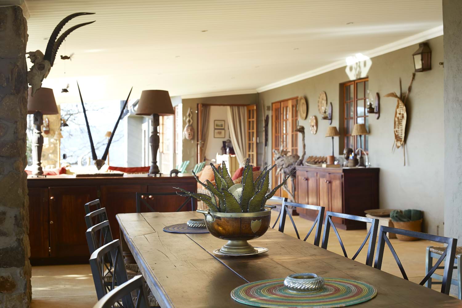 TThis beautiful mountain bushveld property is exceptionally furnished and decorated to provide you with a truly comfortable and memorable stay. Valbonne Villa is in a spectacular location that hangs above the Bekker Mountains, looking towards the Crocodile Valley Gorge, set in the Crocodile Mountain Conservancy just twenty minutes from Nelspruit. The property holds much natural beauty, energy and family and national history – including the Voortrekker wagon trails that are still very evident. This luxurious Guest House is a double-storey, dramatic classical South African Lowveld home with cool rambling veranda and six bedroom suites brimming with family antiques, paintings, local art and a lifetime of memorabilia. Valbonne Villa offers the exquisite luxury of an awar-winning 5-star TGCSA, self-catering guest house suitable for 6 couples or 12 guests sharing – fully serviced. The accommodation includes an elegant sitting room, TV room, and study with all bedrooms en-suite, and a superbly fully equipped kitchen. An extensive covered terrace leads to a large braai area set in luscious gardens, with an infinity pool: all overlooking the most spectacular and dramatic views. Ideal for family travel and corporate breakaways.