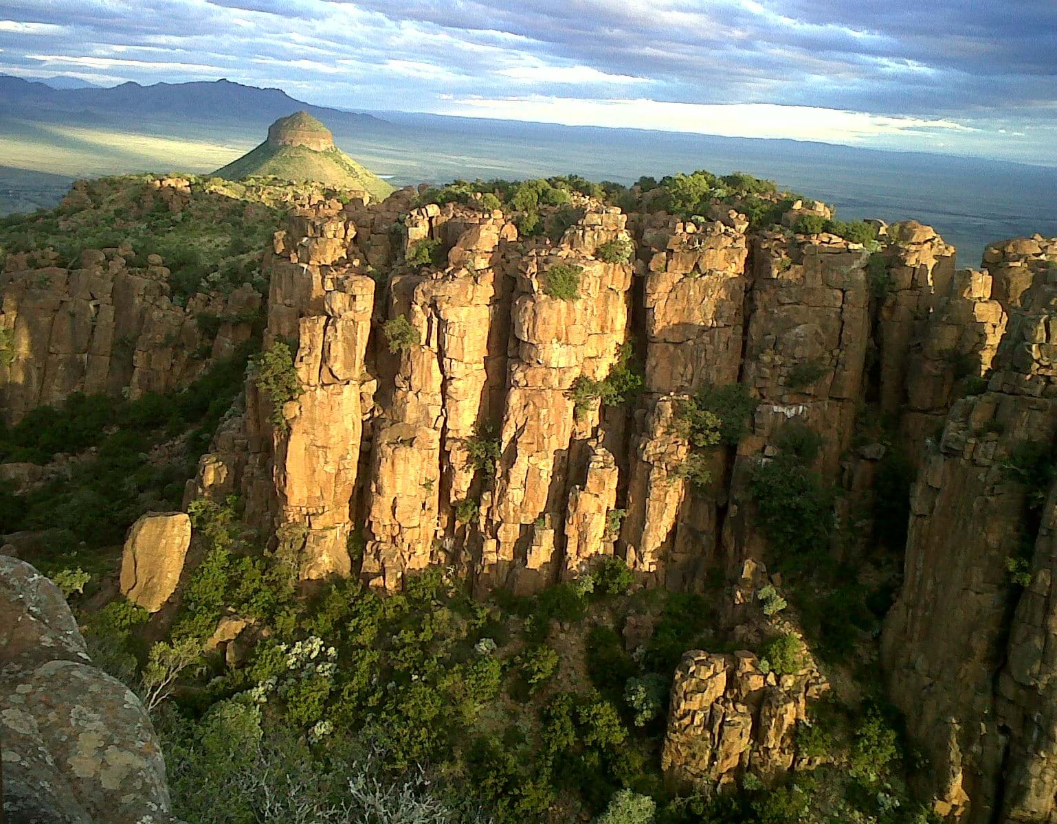 The greater portion of the park is situated between 740 and 1480 metres above sea level on the foothills of the Sneeuberg range, while a small section of the low lying-plains is included. The Nqweba Dam lies within the park and covers about 1000 hectares when full. At some places, dolerites form jointed pillars – the best examples of which are found in the Valley of Desolation where erosion of the softer sedimentary beds has left dolerite pillars which rise to heights of 90 – 120 metres.