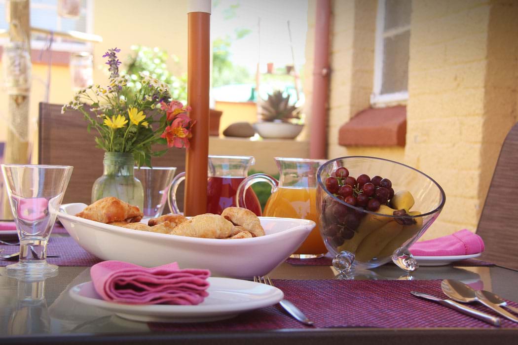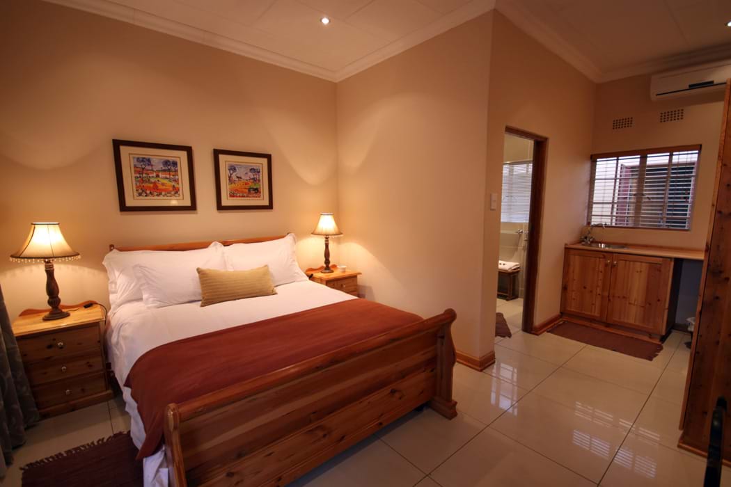 The Guest House offers 7 luxury en-suite guest rooms, each with their own separate entrances. Specially designed to make guests feel right at home, each room is furnished with a queen-size Oregon wood sleigh bed and full satellite flat screen television. Bathrooms have been renovated in true luxury and four rooms even have a classic Victorian-style free standing bath, perfect for couples seeking a romantic stay. Each room is also equipped with air-conditioning for those warm summer days, when guests are encouraged to make use of the large swimming pool facilities. This heated swimming pool, together with the adjacent gym trim park is also useful for exercise purposes and relaxation. The two family rooms each have a queen size bed, a full en-suite bathroom, kitchenette with microwave and bar fridge as well as a loft area with 2 x ¾ beds. A barf ridge, safe, tea and coffee making facilities and hair dryer are available in each room, simply adding to your convenience.