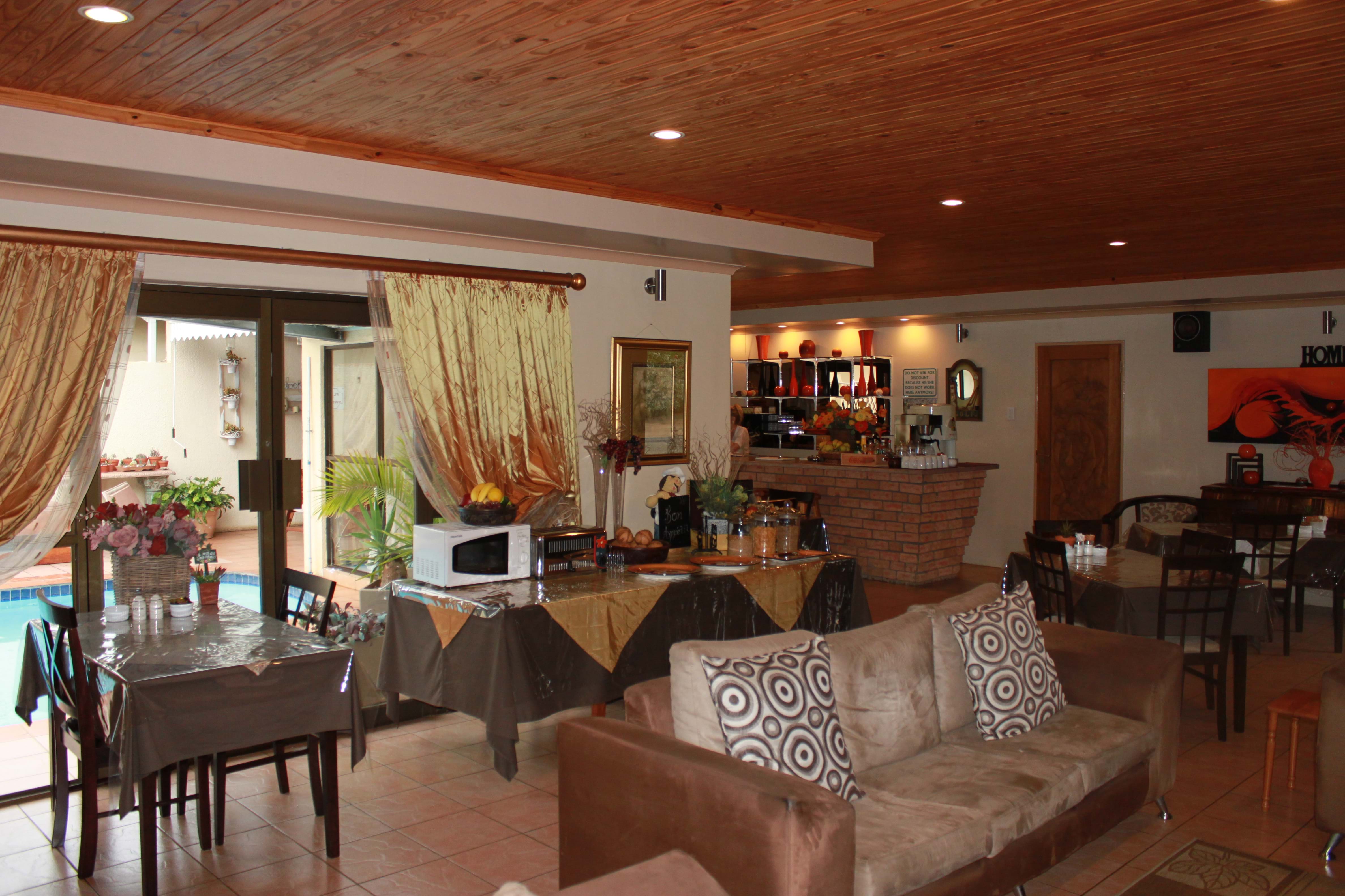 Enjoy a comfortable stay in a warm, friendly atmospfere with a guarantee of personal touch and safety. The spacious, individually decorated rooms are air conditioned, serviced daily, tea/coffee trays and bath/shower en-suite and have TV with M-Net. Other facilities include swimming pool, braai area, self catering kitchen, as well as internet.
