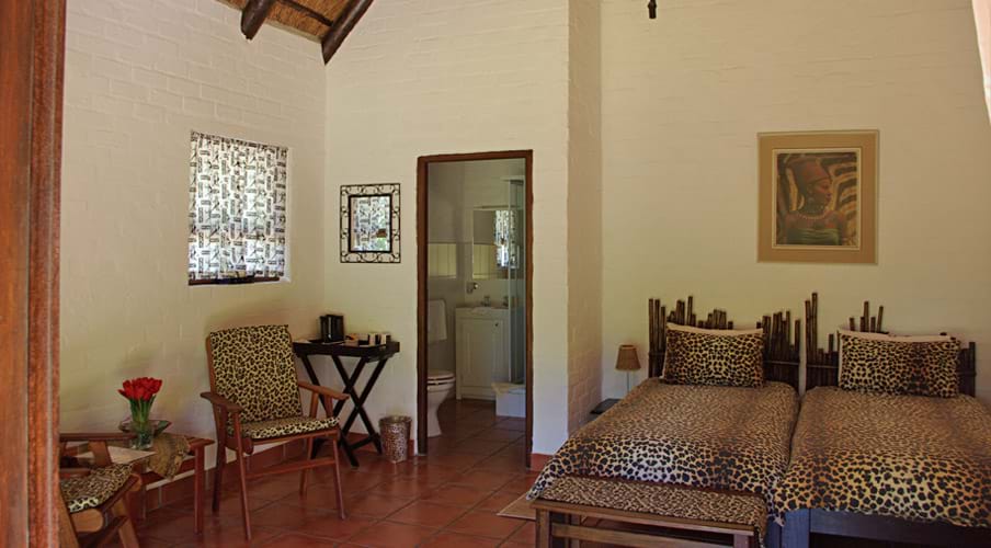 All our rooms are African styled and have a thatched roof. They are equipped with tea and coffee making facilities, mini safe, hairdryer and TV. A refrigerator is available on request. The full continental breakfast (gluten free on request) can be enjoyed either alfresco or in the breakfast room. Your Swiss hosts will be happy to arrange all your bookings (restaurant, tours etc.)