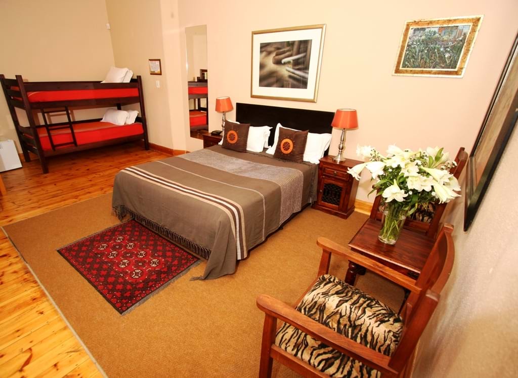 AAfrican Roots Guest House is situated close to the city centre and is part of the original farmhouse built in 1928. The original steel pressed ceilings and oregon pine floors have been retained and the architecture has been adapted to a more contemporary style. All units have individual entrances onto the garden and pool. The suites have their own lounge and fireplace and are stylishly furnished with a range of antique and contemporary furniture and local artwork. All units have TV with MNET/DSTV and a mini-bar. A Full English breakfast is served and dinner is served on request. Secure parking with remote access control is provided. The guesthouse offers a 24-hr wireless internet zone. The Conference venue caters for 30 to 40 people and fax and e-mail facilities are also available