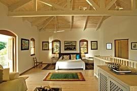 Uitsig (View) sleeps two in a king-size bed or, if previously requested, in twin three-quarter beds. The bath and shower are separate and French doors open onto a sun-baked balcony with a lovely view of the mountains. This private, upstairs suite is wonderfully comfortable.