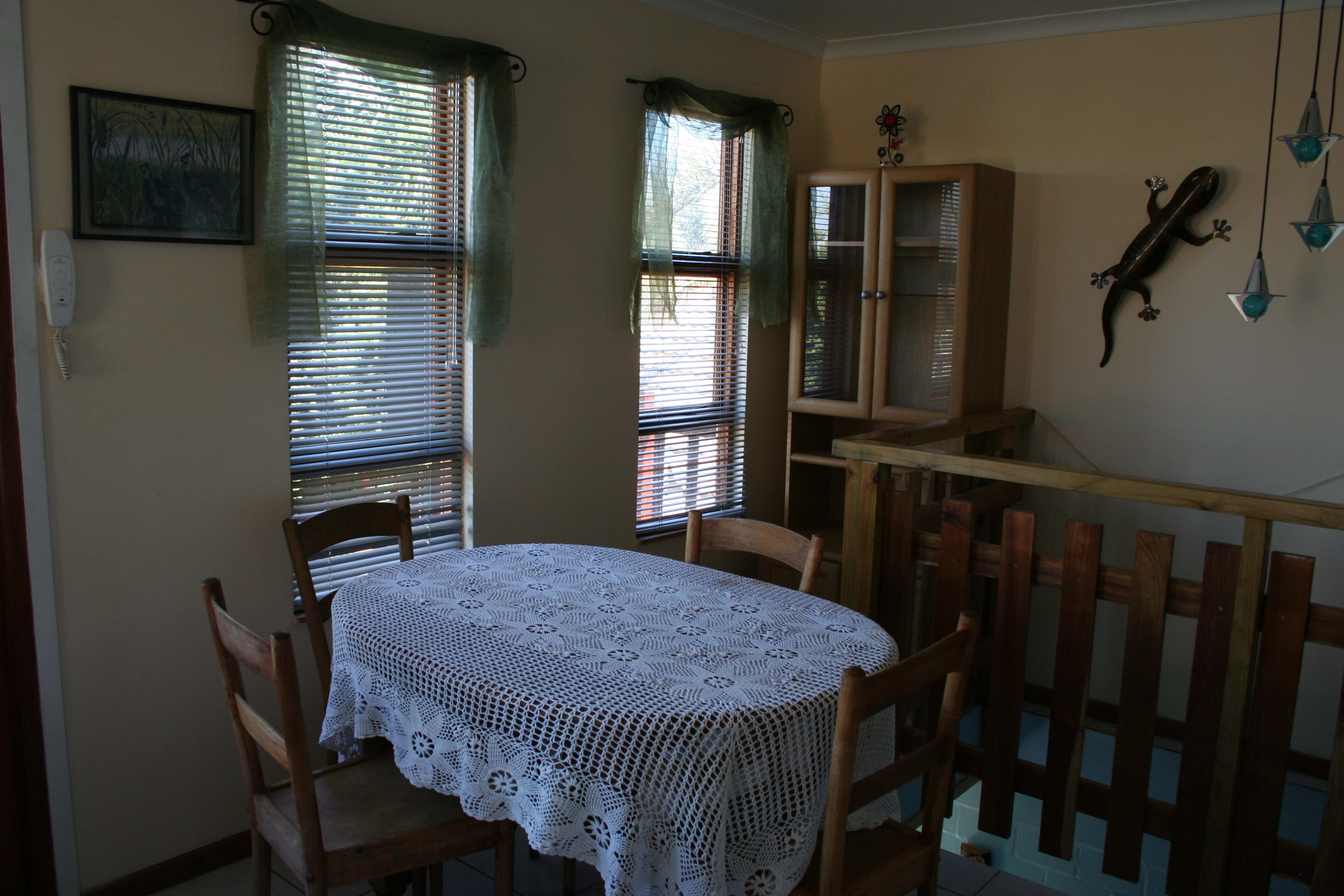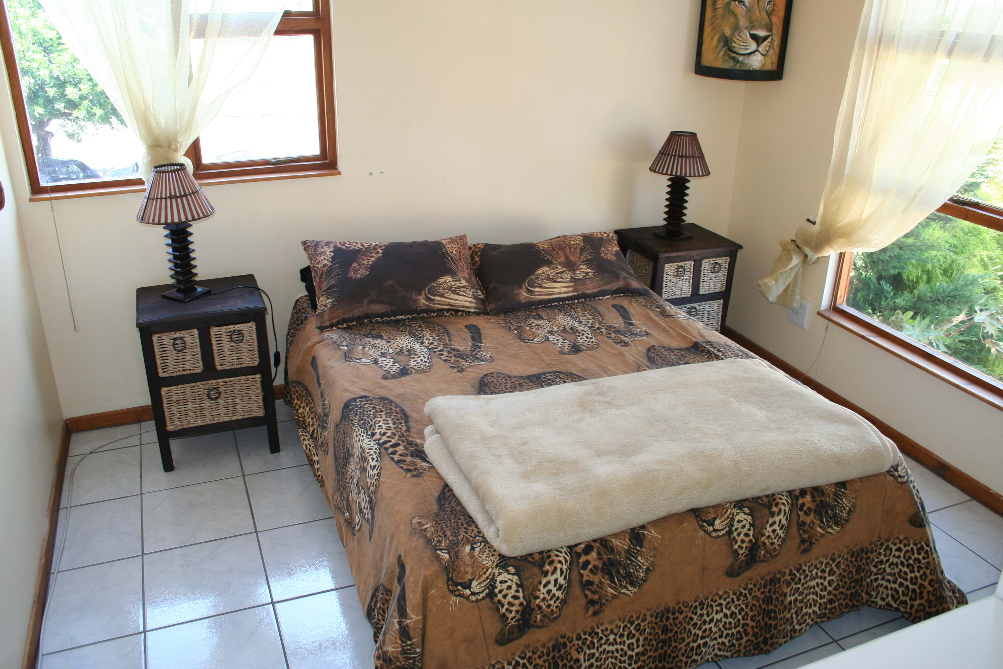 The apartment has two bedrooms and one bathroom. A sleeper couch accommodates two extra guests. This spacious apartment is located on the first floor with an open-plan living area and kitchen. French doors open onto the braai area overlooking Strand and Helderberg.