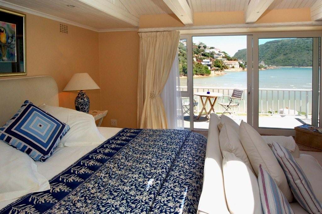 OOn the edge of the beautiful Knysna Lagoon this spacious beach house offers a luxurious comfort and tranquillity complemented by spectacular views. Indulge in a fresh, scrumptious breakfast on the terrace each morning while you watch the tides slowly turn beneath the majestic Knysna Heads. Swimming pool, bicycles & canoes.