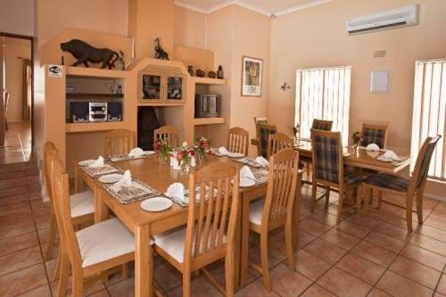 TThe guest house offers 15 beautifully decorated rooms that can accommodate between two and four guests, depending on their needs. The rooms offer comfortable queen-size, double and three-quarter beds, and they have en-suite bathrooms with baths or showers. Each room has a TV with DStv, an in-room safe, Wi-Fi Internet access and electric blankets. Some of the rooms also have air-conditioning for comfort. The Deluxe Family Rooms and Family Units each have a kitchenette that is equipped with a microwave and a bar fridge.