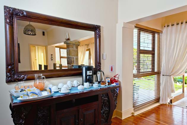 Aquamarine has a picturesque view of the Bay, as well as the majestic Outeniqua mountains on the horizon. A delicious breakfast could be enjoyed both on the main patio, at the poolside, or in the dining room, overlooking the Bay. We look forward to welcoming you !