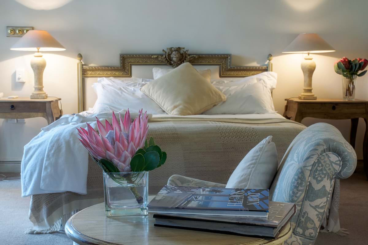 TThis stylish country retreat, in the beautiful Franschhoek Valley, is tucked away on an historic wine and fruit farm. Surrounded by magnificent mountains, and only a few minutes from the centre of the quaint village, Auberge Clermont offers peace and seclusion for the discerning traveller. Six Luxurious en-suite rooms, including a gorgeous honeymoon suite, are individually decorated in the colours and moods of Provence. Underfloor heating and ceiling fans ensure year round comfort. The Auberge offers a tennis court for the energetic, a sparkling pool overlooking plum orchards and leisurely walks through the vines and along the oak lined river. The self catering Villa overlooking the vineyards and surrounding mountains is set in a private garden with pool providing a different option for a small group or family.