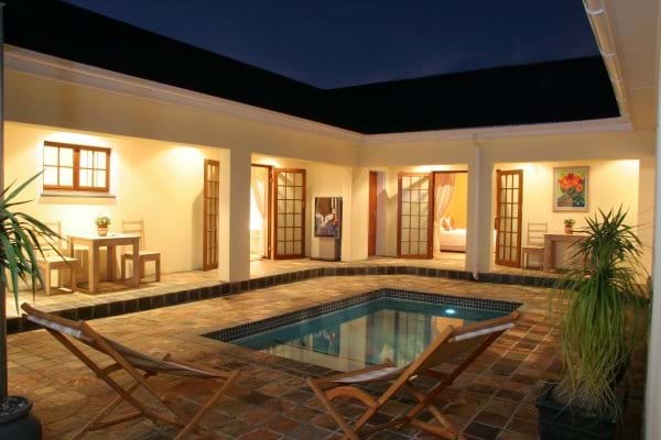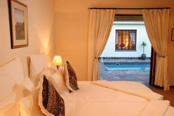 FFive comfortable luxury double rooms with en-suite bathrooms with both bath and shower, 2 twin-bedded and 3 with queen beds, electric blankest for winter and ceiling fans for summer. Each room has a separate entrance from the secure parking area for all Guests which leads onto the pool terrace. Early evenings can be spent sipping wine at the pool area or at the cozy aviation theme lounge.