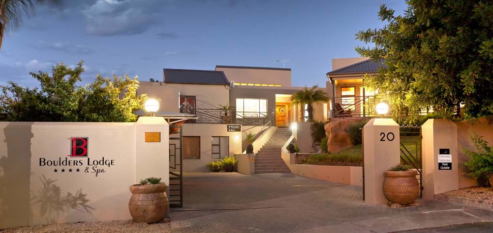WWe offer 9 en-suite bedrooms with 5 of them with jacuzzi spa baths. We have a health spa on the premises where guests can enjoy relaxing treatments. Extend the experience by dining in our a la carte restaurant, Pomegranate, also on site for your convenience. Our Wine List comprises of local wines of distinction and for those lazy summer days, sip on one of our cocktails and enjoy the view of the Swartberg Mountains. Boulders is an experience.