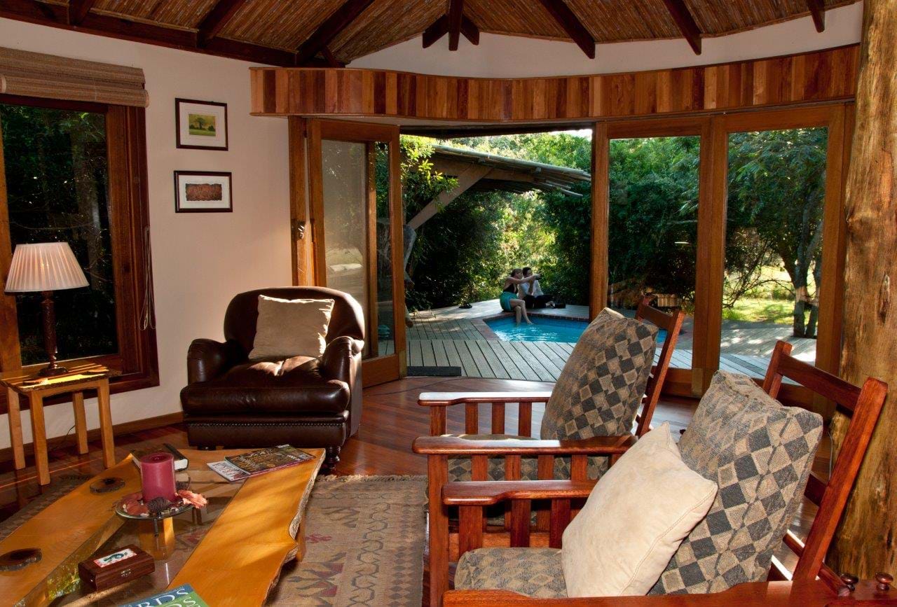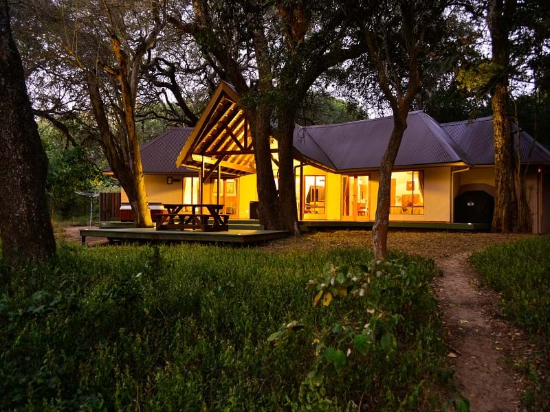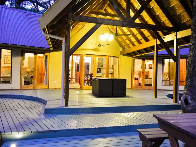 Retreat to our self-catering COTTAGE with thatched roof set under tall and rare Lebombo Wattles for a cosy and relaxing escape. Relax in the spa bath on the outside deck and listen to the sounds of the African night.