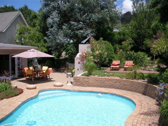 See the sun rise over old oak trees surrounding the Victorian building, covering our secure parking behind locked gates. Coming home from a business or golfing day, horse riding, wine tasting or a hiking excursion and enjoy a swim in our sparkling salt water pool. Come and rest in the shadow of the surrounding mountains and rejuvenate your soul in our magnificent tranquil garden with its old oak trees while watching the birdlife or the playing squirrels. Take a cold drink or cup of coffee/tea and relax.