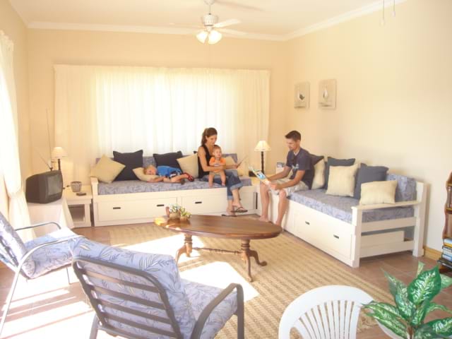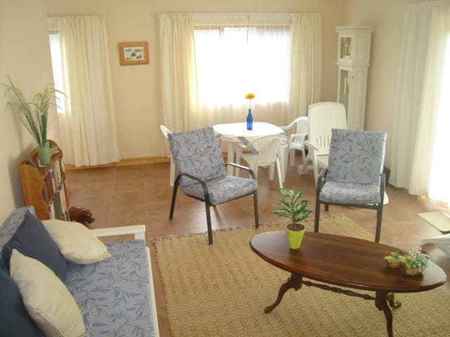 *The lounge/dining room is airy and spacious with ceiling fans, T.V. SABC channels 1,2,3,4.