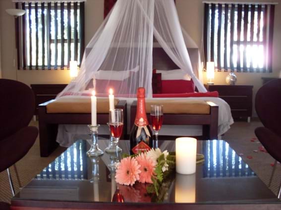 All 6 rooms have their own private entrance, Air conditioning, TV with DSTV, mini fridge bar, lovely view and en-suite bathroom, Jacuzzi baths in some. There is very high security on the premises.