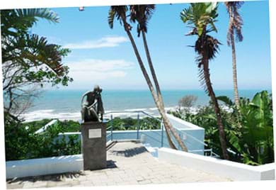 The European background of artist and photographer Dr. Guido Schoeldgen and his wife Annette, a fashion designer, is evident throughout. Clear-cut lines, refreshing pictures and sculptures with accompanying texts characterise the beachfront hotel. Each suite is a world on its own, a masterpiece of design in exquisite shades of aqua blue. The spacious pool set over the ocean is illuminated at night. Above it are the restaurant and lounge with projected images and music ranging from Pavarotti to Café Del Mar. The chef makes suggestions, the guests decide and then enjoy – fusion cuisine, a combination of Italy and France with a dash of Asia, “con-fusion cuisine†as Guido jokingly calls it. The five-star boutique hotel is surrounded by three world-class golf courses – Wildcoast, San Lameer and Southbroom – and several leading game reserves, home to the “big fiveâ€, are within driving distance. The team of the hotel deals in a cheerful yet discreet manner with queries or requests. With breakfast served in bed or on the private terrace, the hotel is a haven not only for honeymooners. The owners philosophy? – there’s no such thing as no can do!