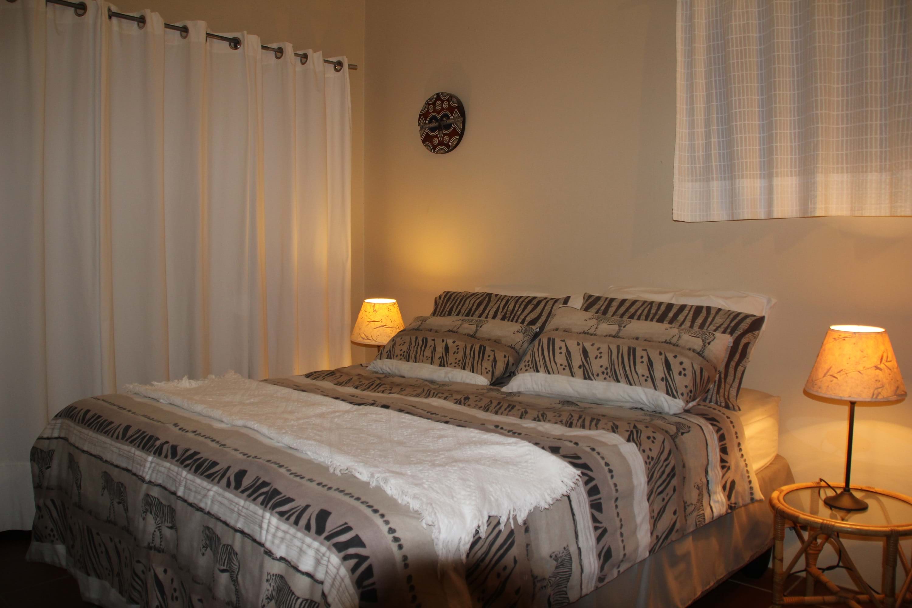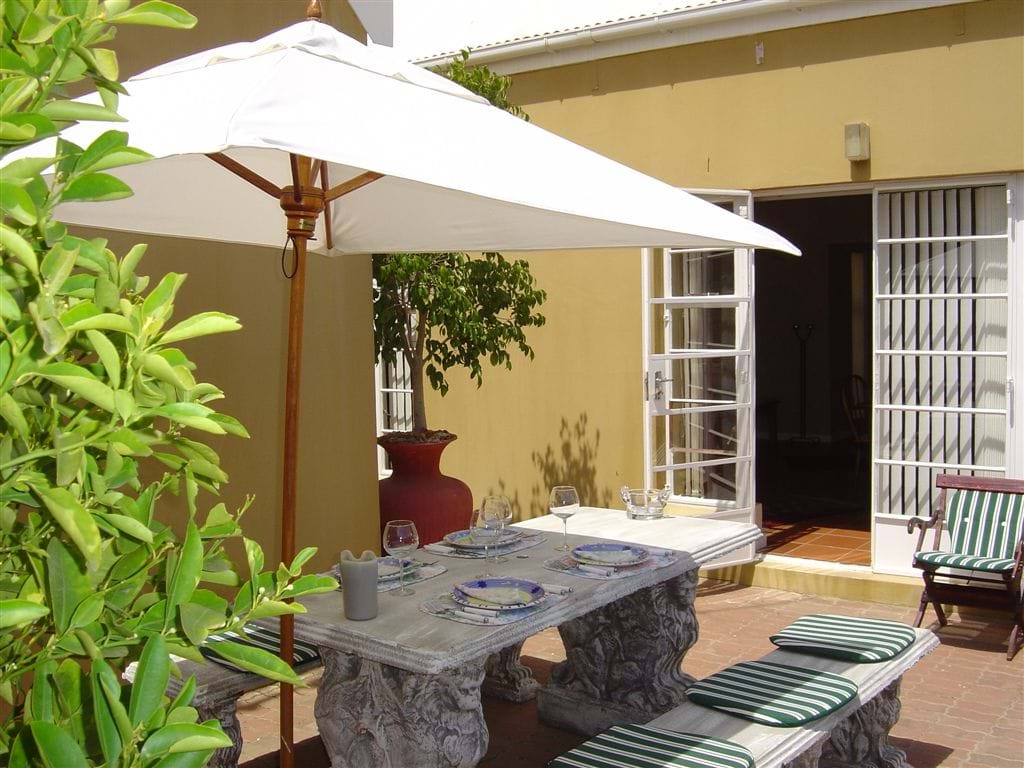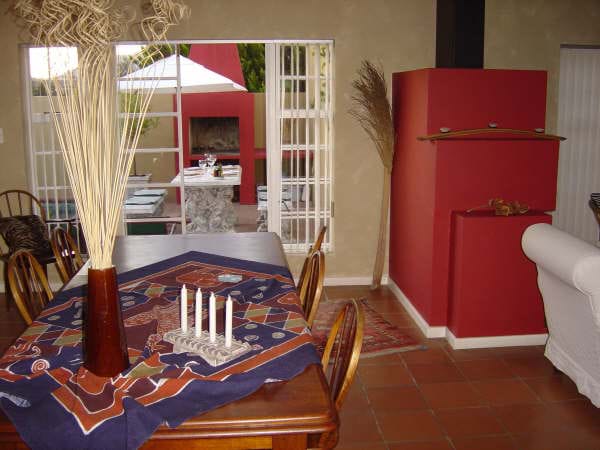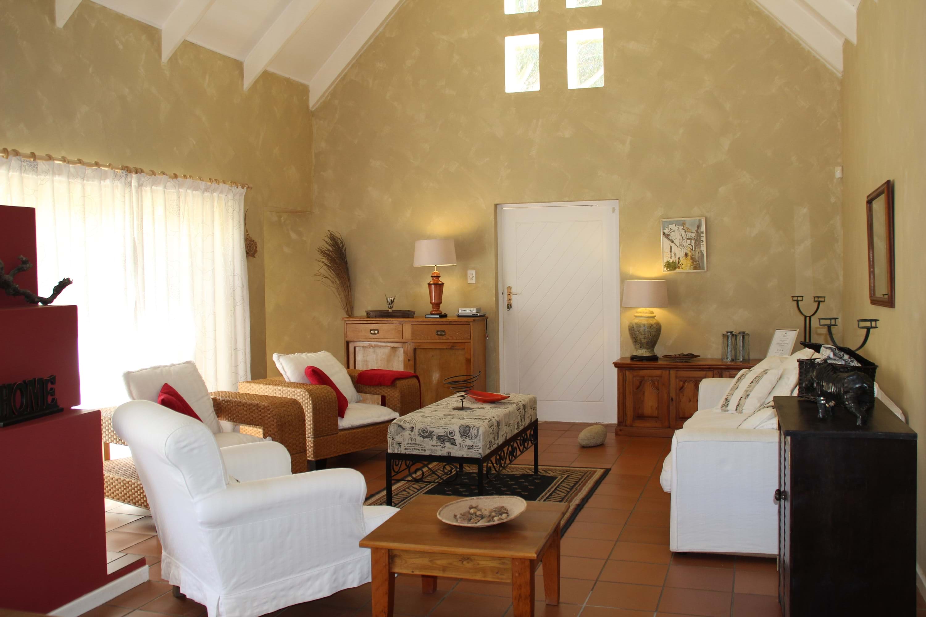 The kitchen, lounge and dining room area is open plan - with a high, arched ceiling the area is large, light and airy, beautifully furnished but still very comfortable. For cooler evenings there is a large fireplace to keep you warm whilst you watch Television (with M-Net) or enjoy some of the fine Cape wines you’ve purchased from any one of the nearby Wine Estates during the day.