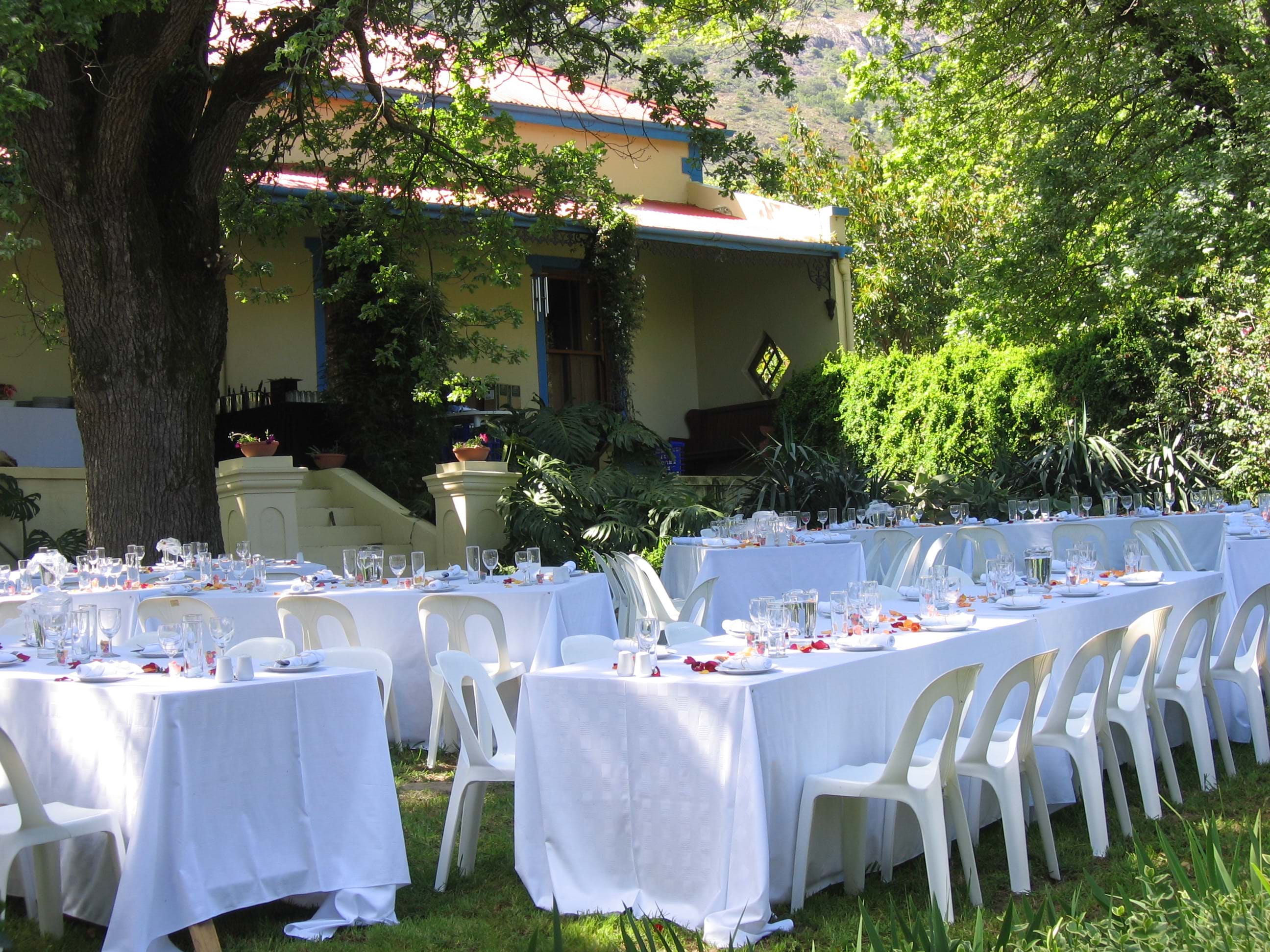 An old farmhouse and cottages nestled amongst vineyards, olive groves and mountains, make Fynbos Estate ideal for getaways, workshops, retreats and conferences. Lovely gardens, a pavilion and a simple chapel, create a magical setting for weddings, parties, and other functions.