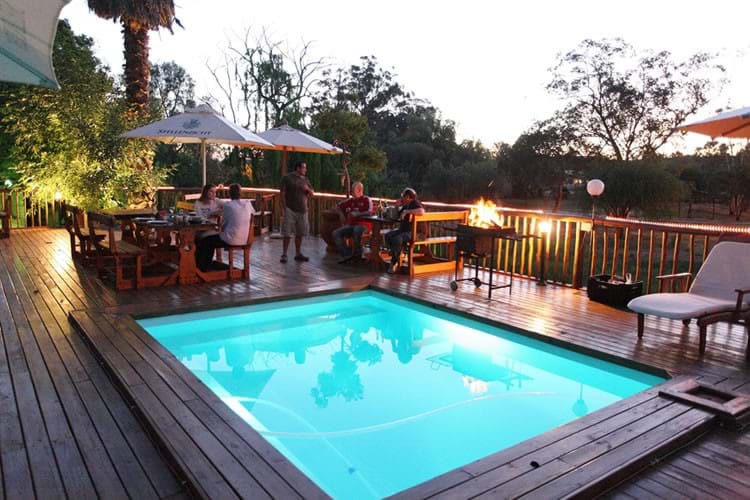 TThe Gumtree is located on the banks of the Grobbelaars River with views of the historic Suspension Bridge and Swartberg Mountains, and our garden is a haven for many different types of birds. We are very central in town, only 2 minutes walk to the nearest restaurants. We also have braai/bbq facilities at the Pool Deck which many guests take advantage of.
