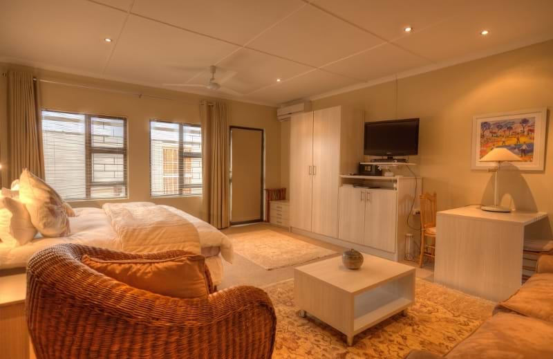 HHazelwood House, situated on the slopes of Stellenbosch Mountain in a quiet tree-lined street in a desirable suburb of Stellenbosch, yet only 15 minutes walk to the centre of the historic, second oldest town in South Africa. Superb views of the surrounding mountains with Table Mountain clearly visible. The lush tropical garden and large sparkling swimming pool with extensive patio and lapa, provide a perfect situation for complete relaxation after a busy day visiting the numerous golf courses and vineyards nearby. Central Cape Town and its international airport are less than 35 minutes away by car/taxi. The beautiful coast, with whale watching between the months of June and December, is a 20-minute drive away.
