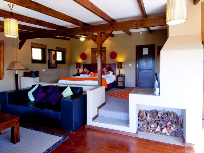 Sixteen suites situated in lush gardens surrounding the main house, decorated with  earthy colours, bright fabrics, African artifacts & local handcrafted woods. Comfortable suites offer private wooden decks, king sized beds, lounge area, en-suite bathrooms and most have cosy fireplaces.
