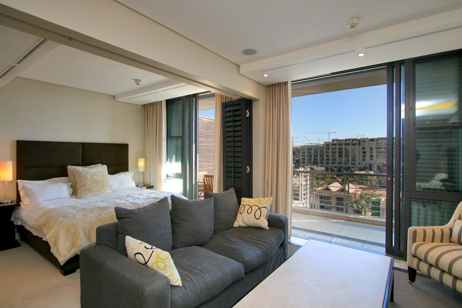 The balcony provides an excellent place to relax and enjoy the magnificent views of the Waterfront, Marina and canals with Table Bay beyond.