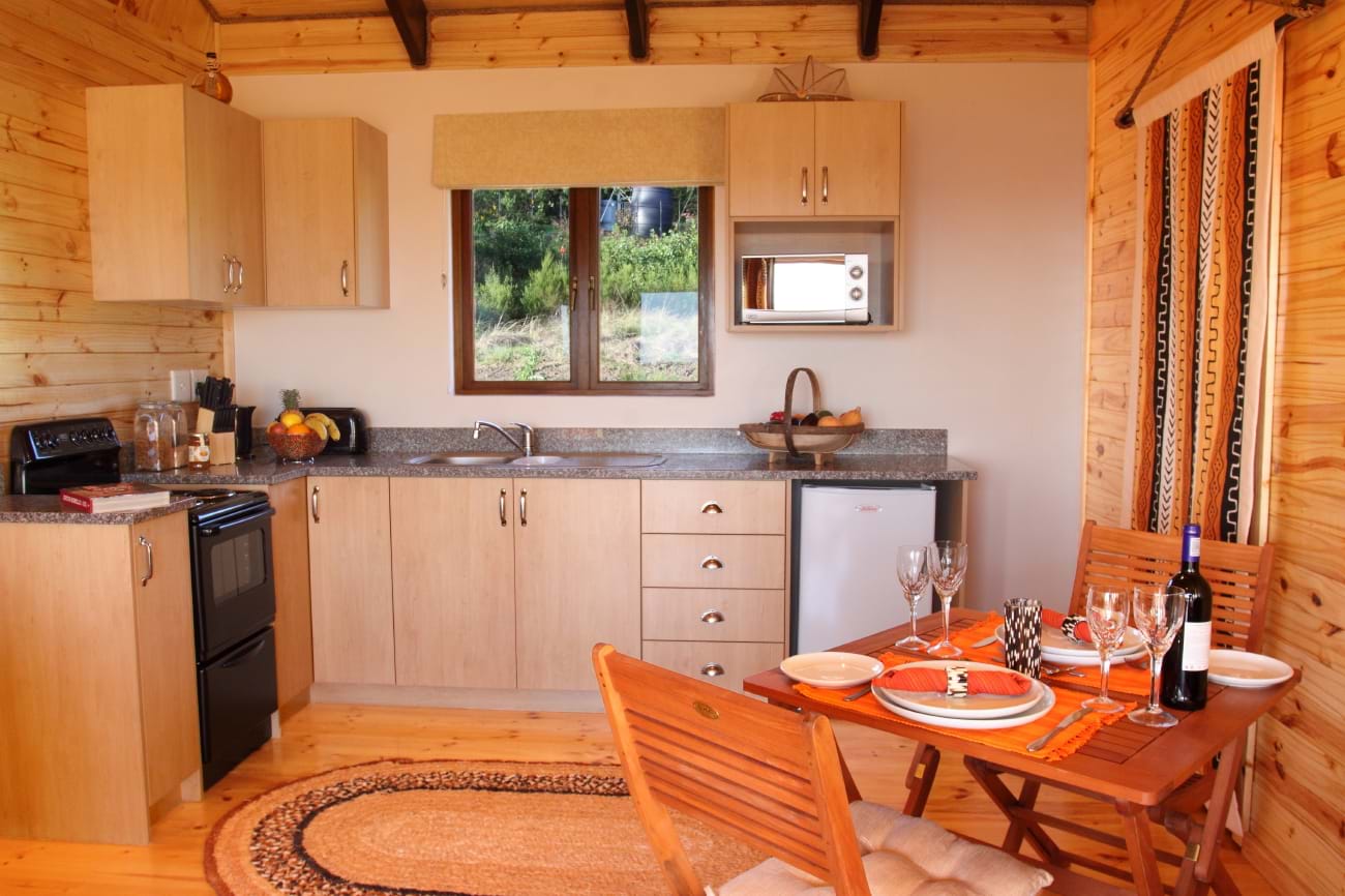 The lodges comprise two separate four-sleeper units, cleverly designed to be merged into one larger lodge if required, each offer one bedroom with en-suite shower, a sleeper couch, fully equipped kitchen facilities and a lounge/dining area that extends to an outside deck and braai (barbeque) facilities. Your hosts will go out of their way to assist by supplying you with any additional requirements that you may have.