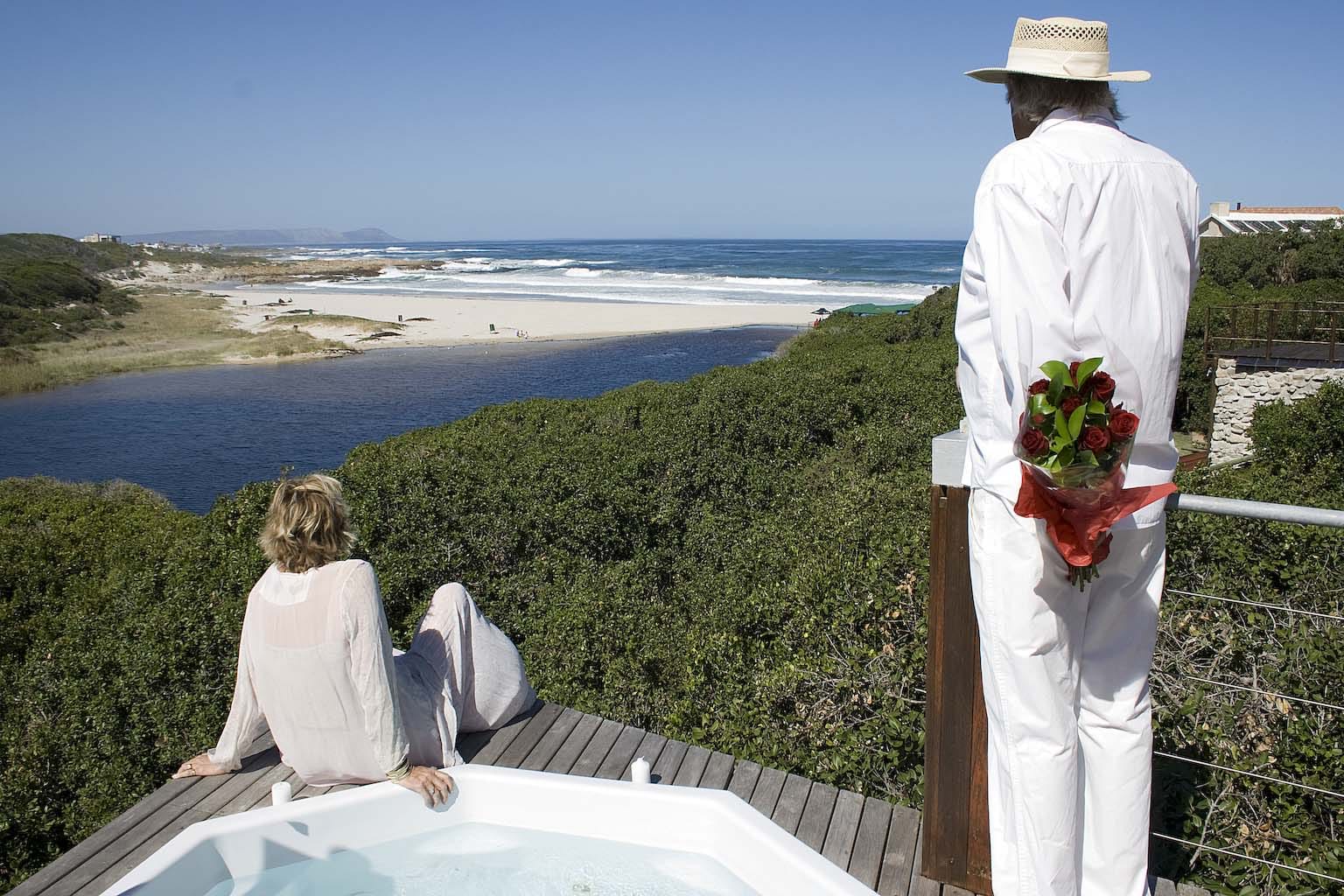 TThis five star accredited villa is situated right on the Onrus beach and lagoon. Views are spectacular with panoramas of mountain, river and sea enveloping this unique little piece of paradise, with its own milkwood forest. Absolute privacy, luxury and exclusivity ! Caters exclusively for two couple at a time. A totally unique experience is the Victorian bath where you can bathe under the stars by candlelight in total privacy! Aromatherapy massages under the milkwood trees in your own garden of about 700 m. Organic toiletries has been specially blended for KENNEDYS. Enjoy the jacuzzi on open deck, overlooking the beach while having a spectacular view and a times seeing the whales frolicking in the bay. 13 km from the world reknowned Arrabella Golf Estate and Hermanus Golf Club! Villa completely self catering. KENNEDYS has been touted as “one of the most unique and romantic holiday destinations in the World†by a leading SA tourism aficionado.