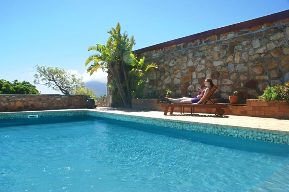 Five double rooms comprising 3 luxury poolside suites with separate lounges & bedrooms, a garden room with lounge area & a self catering chalet, all with outside private patio areas.
