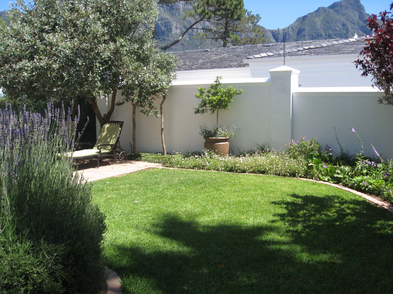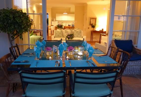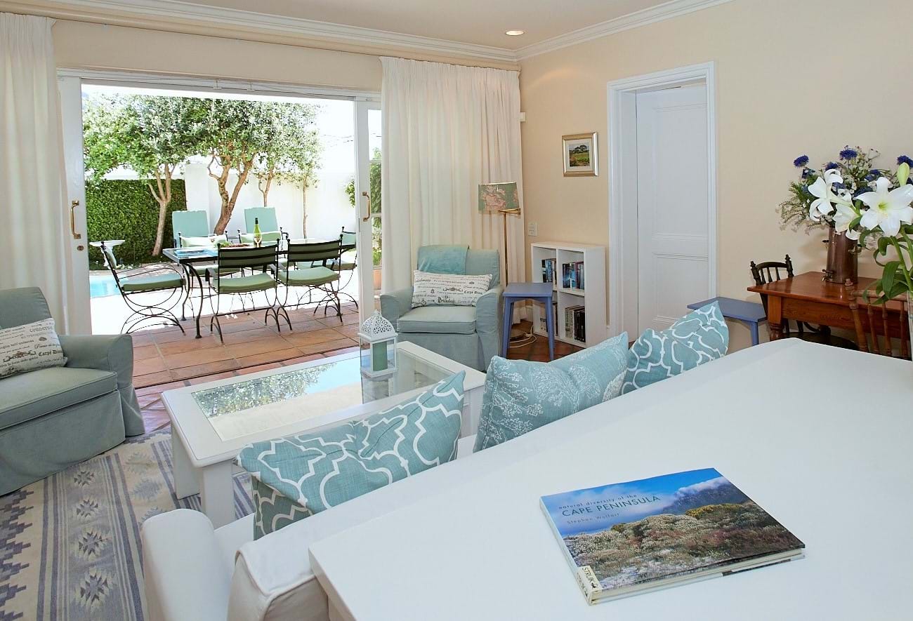 MMel’s Place has a welcoming open plan North facing family room with sliding French doors onto a patio, pool, garden and barbecue facilities.  There is a flat screen TV in the lounge (and Courtyard bedroom) and free internet access.  The small but well-equipped kitchen includes a dishwasher, microwave, stove with oven, fridge, all crockery, cutlery and pots & pans.  Washing machine in the garage.