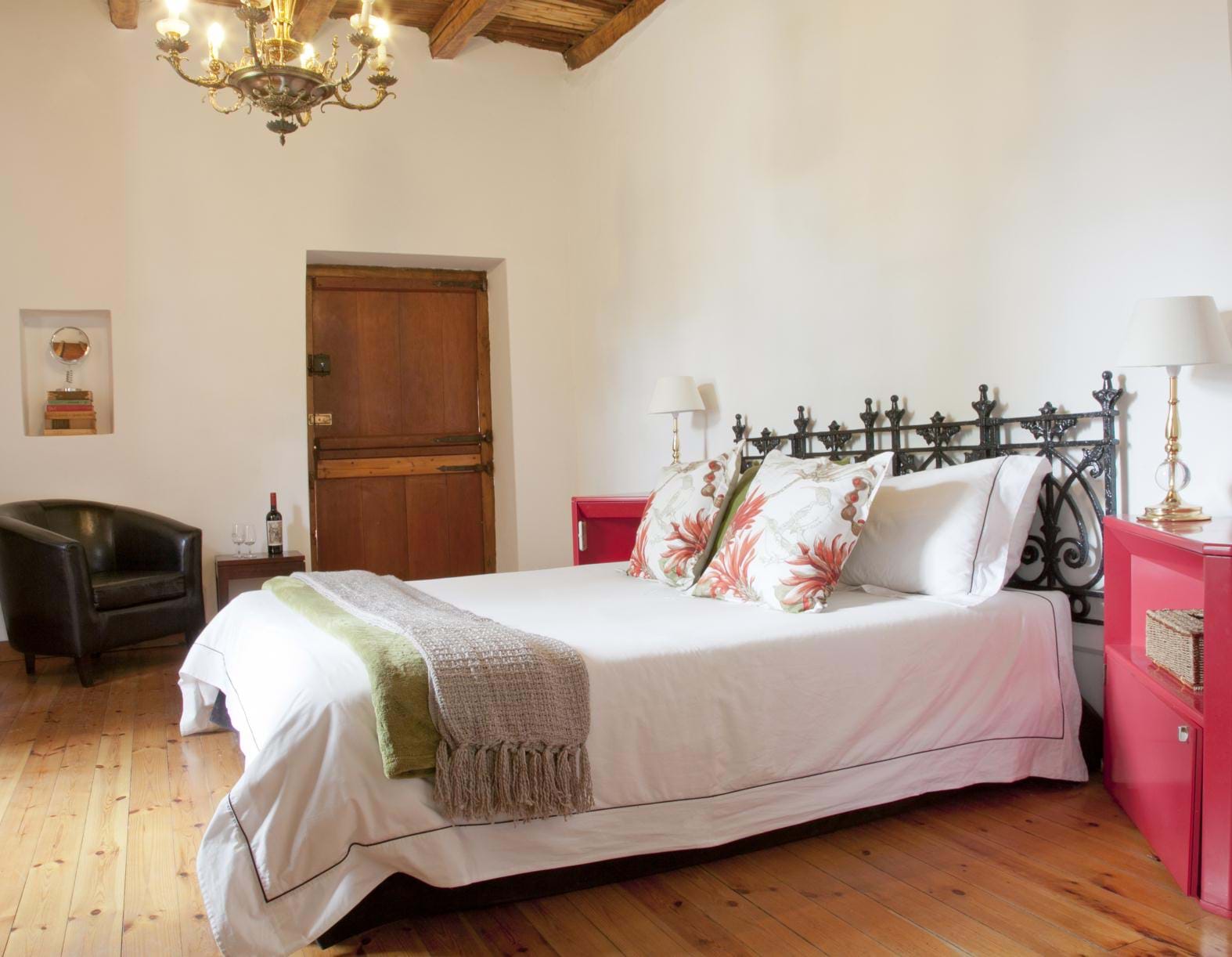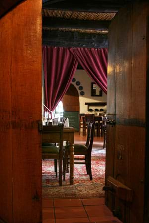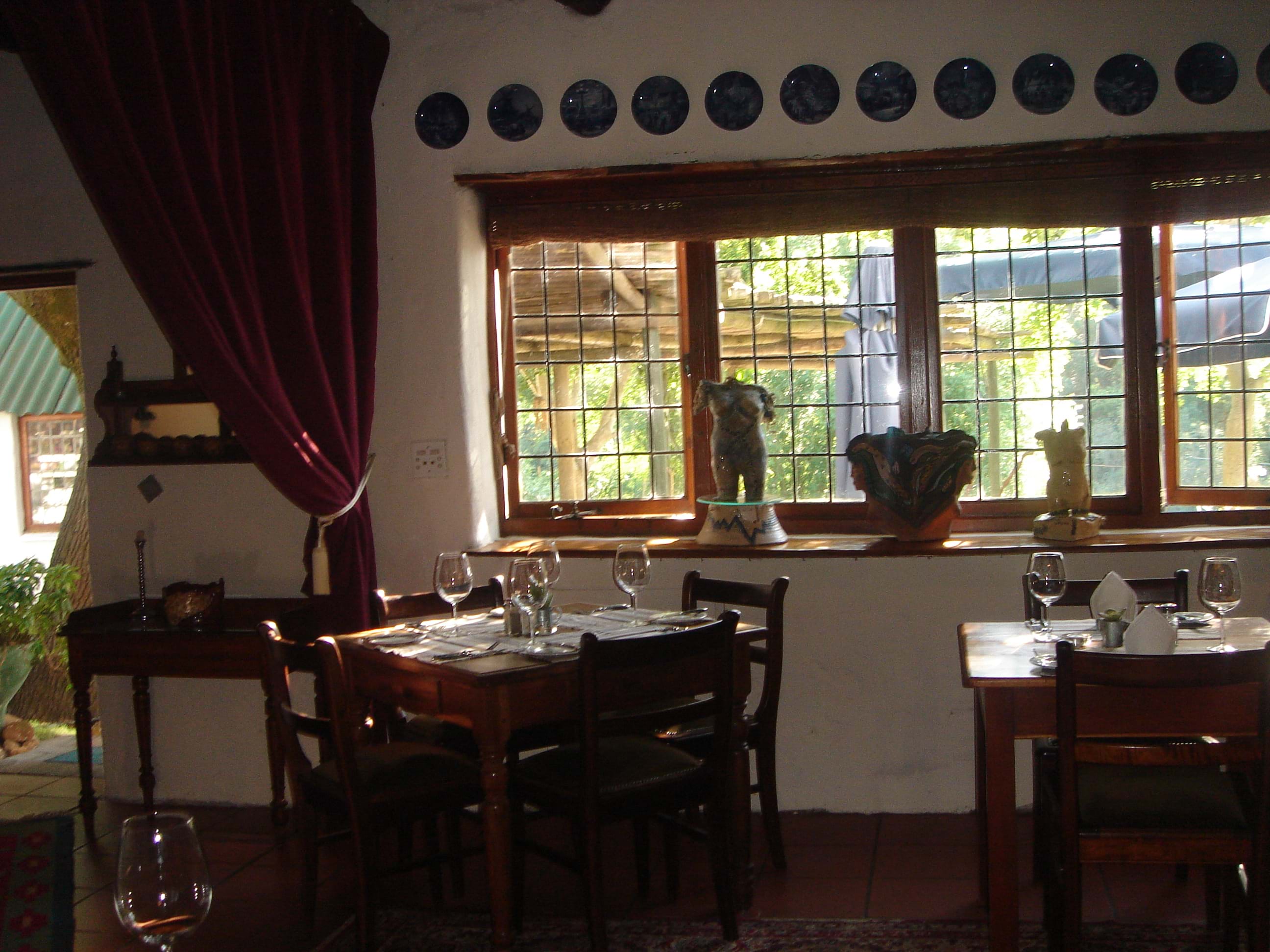 LLook forward to a picturesque historical Cape Dutch Farm of 1790 with thick white-washed walls and gables in its own valley along a small river. The red brick road through vineyards leads you to rolling lawns and white buildings. accommodation GUESTHOUSE Each of our guestrooms has its own private entrance and is individually decorated with epoch antiques and modern comforts. Some rooms have queen-size beds, others have twin beds. Most rooms have air-conditioning, under-floor heating, DVD, TV, wine fridge with a selection of wines and water, private telephone, hairdryer, Stereo, WiFi, etc. SELF-CATERING COTTAGE Our self-catering cottage (breakfast is still available) is best suited for two adults and a child but has an additional fold-out bed as well. The cottage with in and outdoor braai (barbeque) and kitchenette (equipped with cutlery, crockery etc ) is fully serviced. HONEYMOON SUITE A real gem is the honeymoon suite. This is a free standing thatched cottage with a thatched veranda for a beautifull view. Is has a romantic four poster bed and a big French marble fireplace in the sitting room. Like all other guest rooms it is fully equipped. restaurant Our very cosy country restaurant combines the culinary inspirations of our Dutch chef John Tecklenburg with classic European and Indonesian cuisine. wine and brandy We manufacture handcrafted red / white wines, grappa and brandy. The entire production from growing grapes, hand-picking at harvest time to bottling and labelling all happens on the estate. animals : Our naughty dog Crystal are always around or sleep the day away.