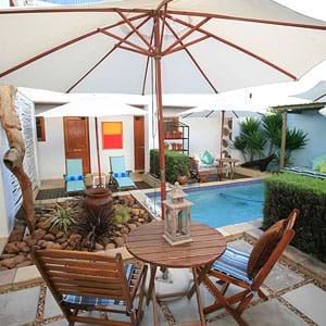 Our five individually decorated bedrooms have a lot to offer The three luxury ground floor sea facing rooms allow you to walk straight out to the beach from your private patio while the fourth sea facing room on the first floor has great views and direct access to the beach via its own staircase. The beautifully decorated courtyard room has a patio from which you can view the sea as well direct access to the beach. Views of the vast Atlantic can be enjoyed from our communal patio, guest lounges, bar and library designed for the privacy and comfort of our guests.