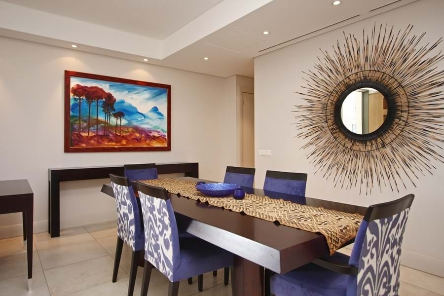 Rich textures compliment the comfortable and unique furnishings of the apartment, there is a strong and distinct African flavour running through the apartment. With a lovely kitchen set in an open plan living area this apartment provides a great space to enjoy the atmosphere of the Marina.